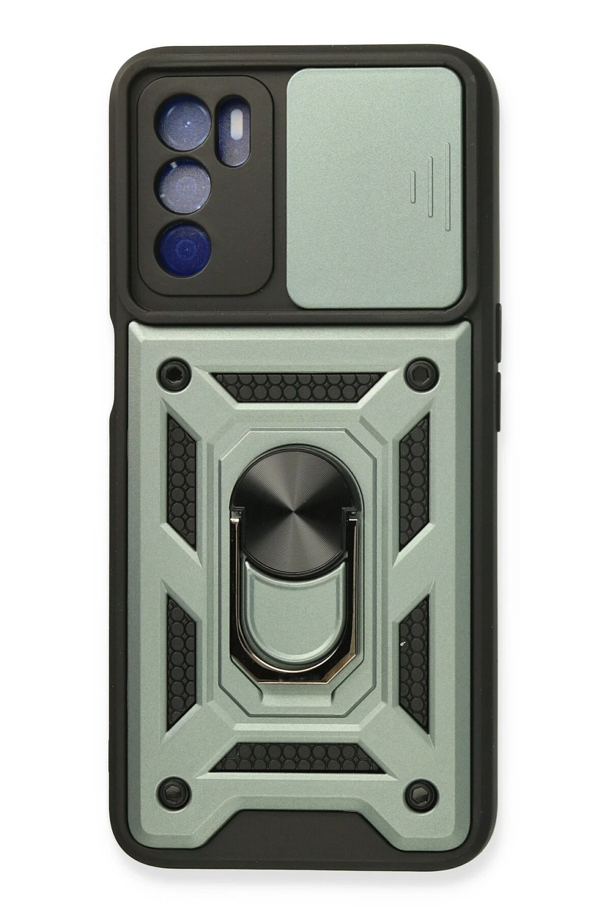 Newface Oppo A16 Kılıf Pars Lens Yüzüklü Silikon – Yeşil