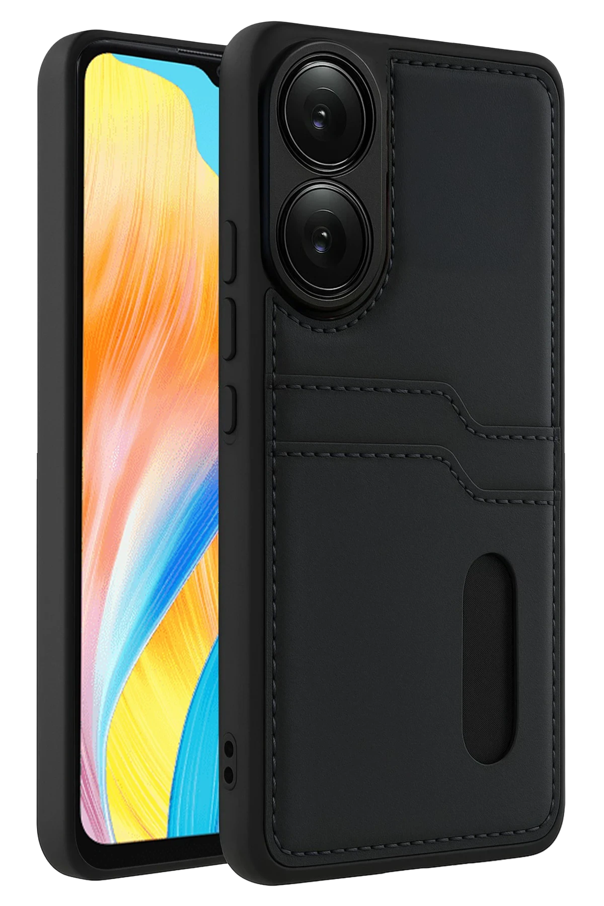Newface Oppo A38 Sara Kartvizitli Deri Kılıf – Siyah