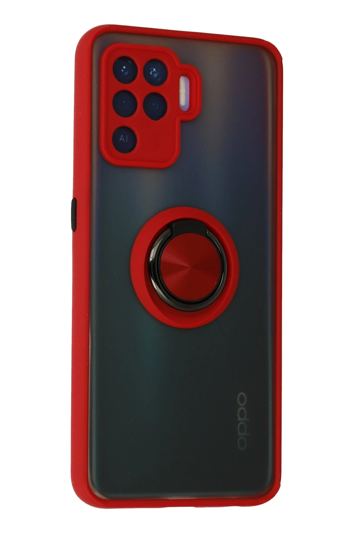 Newface Oppo Reno 5 Lite Kılıf Montreal Yüzüklü Silikon Kapak – Kırmızı
