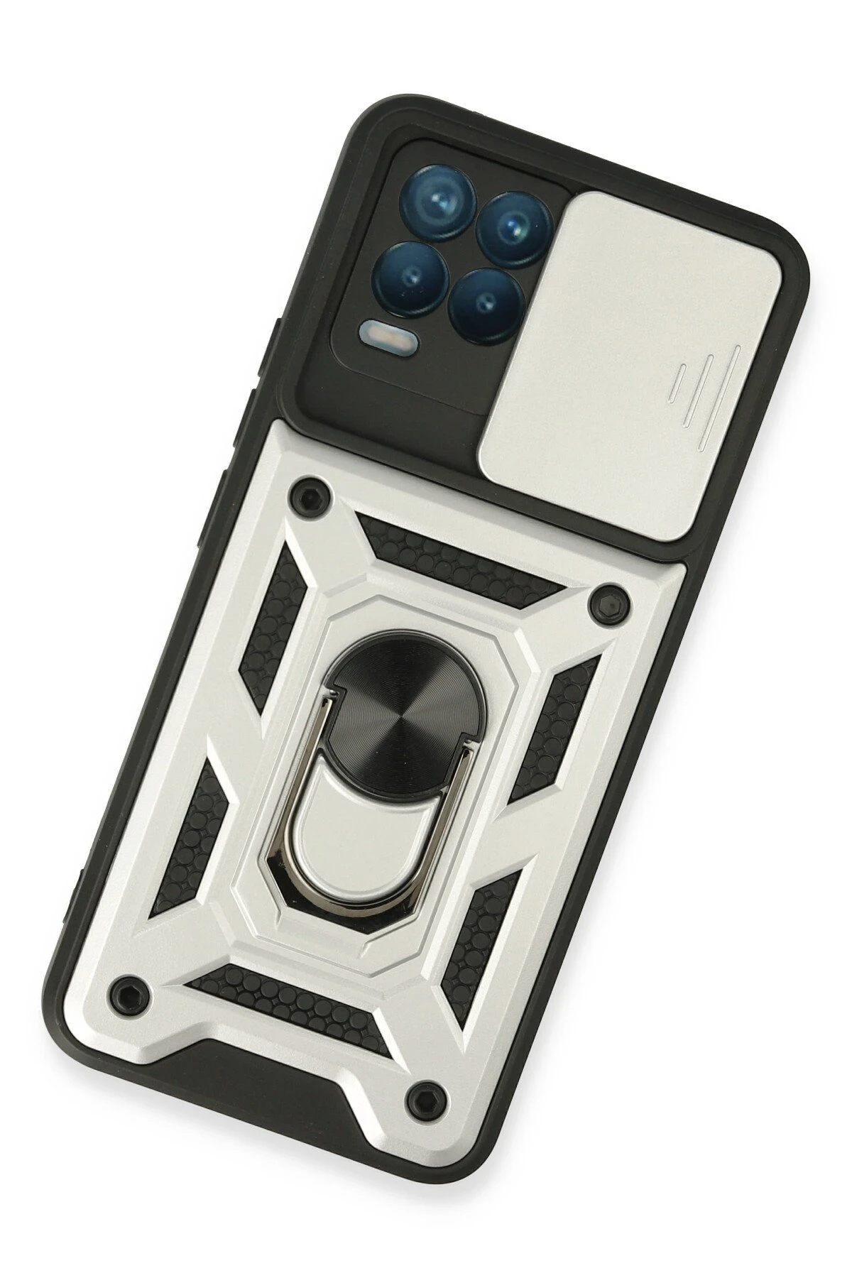 Newface Realme 8 Kılıf Pars Lens Yüzüklü Silikon – Gümüş