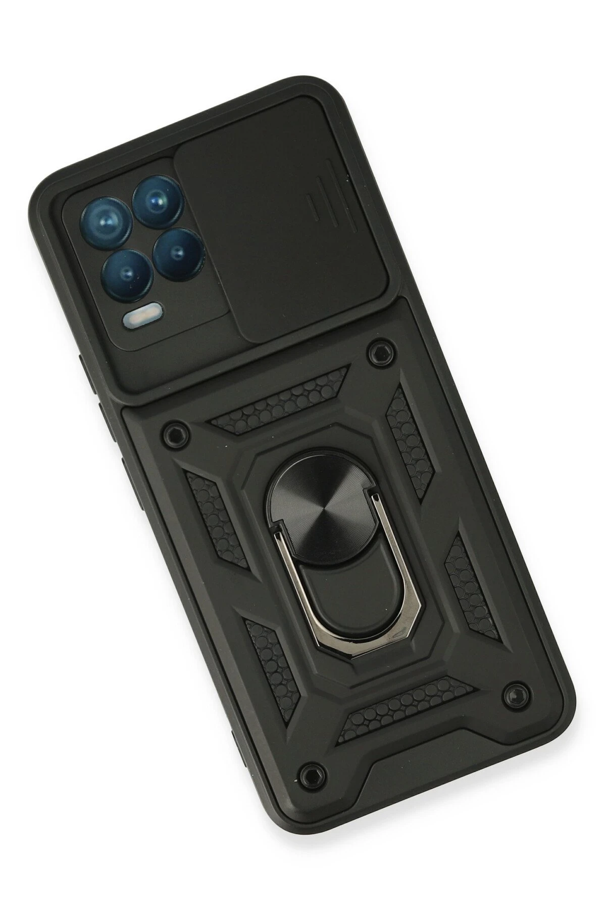 Newface Realme 8 Kılıf Pars Lens Yüzüklü Silikon – Siyah