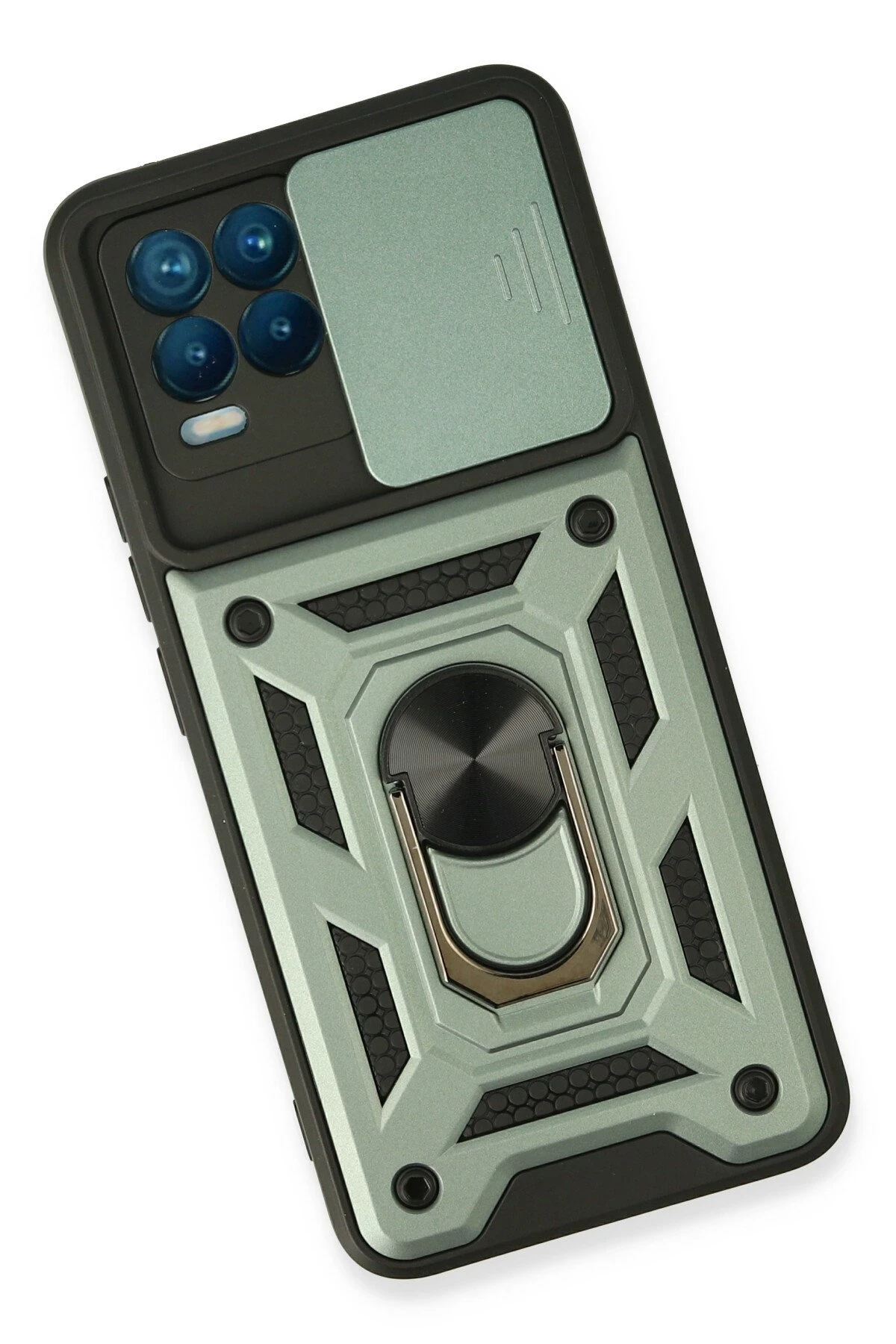 Newface Realme 8 Kılıf Pars Lens Yüzüklü Silikon – Yeşil