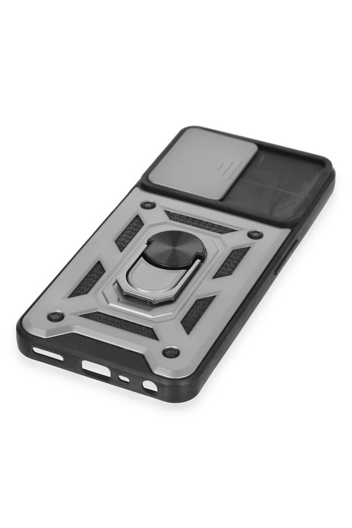 Newface Realme C35 Kılıf Pars Lens Yüzüklü Silikon – Gümüş