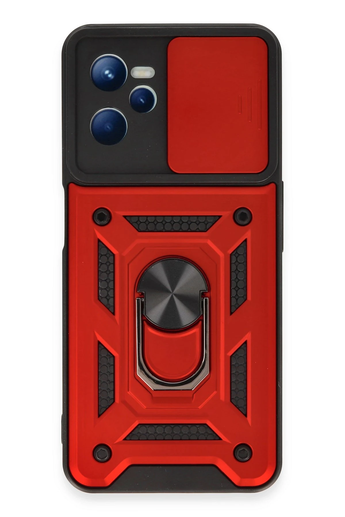 Newface Realme C35 Kılıf Pars Lens Yüzüklü Silikon – Kırmızı