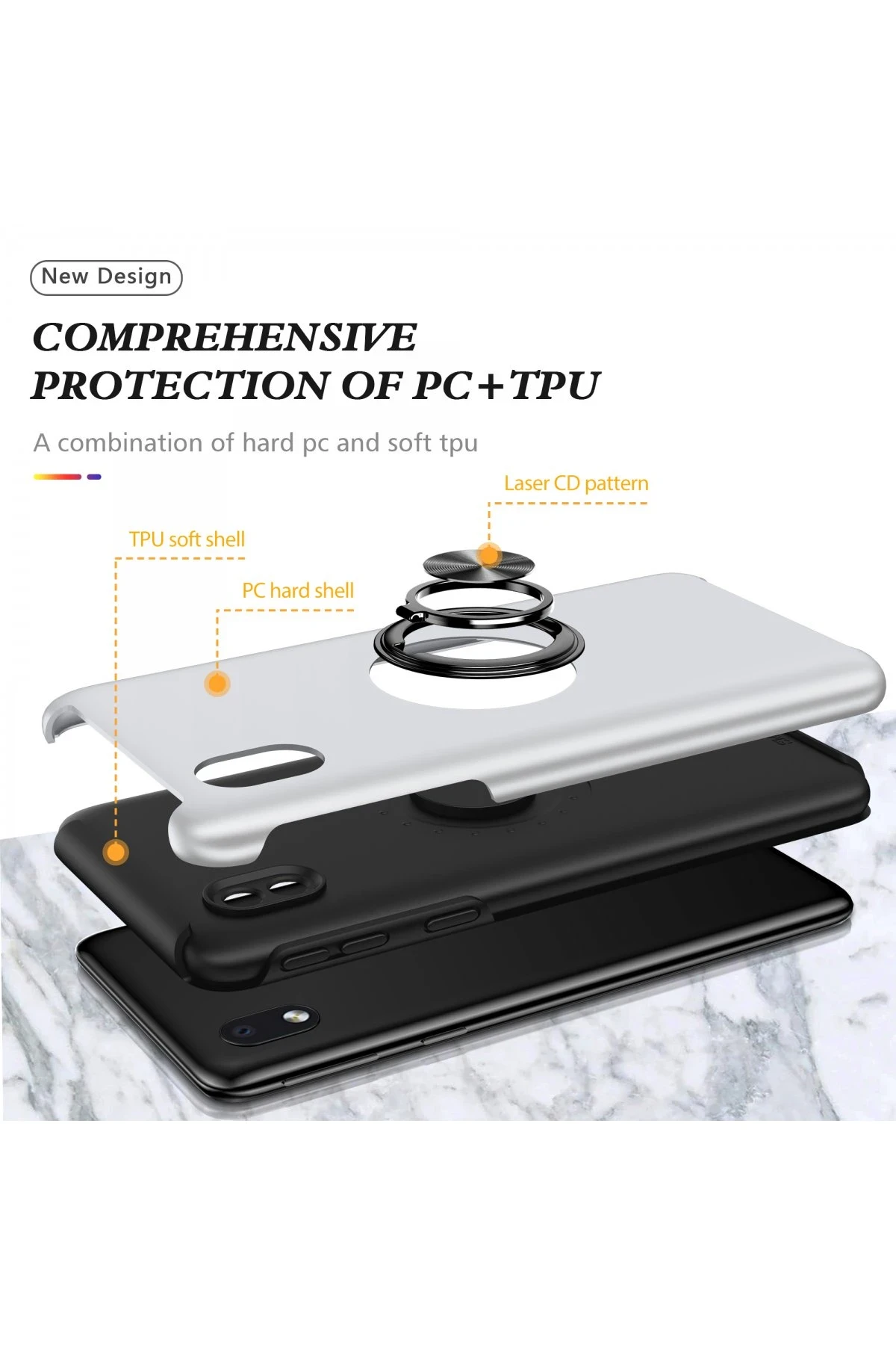 Newface Samsung Galaxy A01 Core Kılıf Elit Yüzüklü Kapak – Gümüş