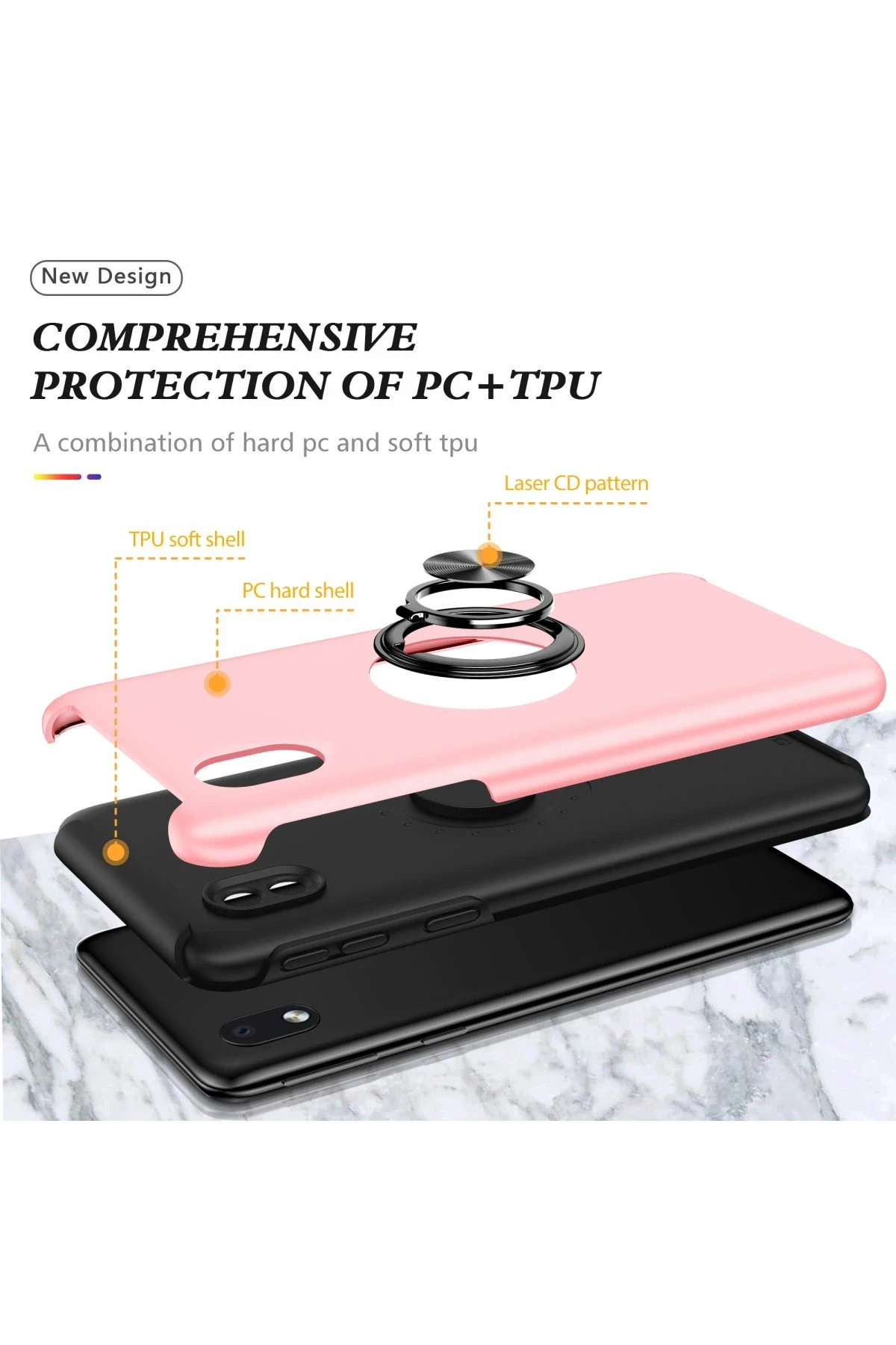 Newface Samsung Galaxy A01 Core Kılıf Elit Yüzüklü Kapak – Pembe