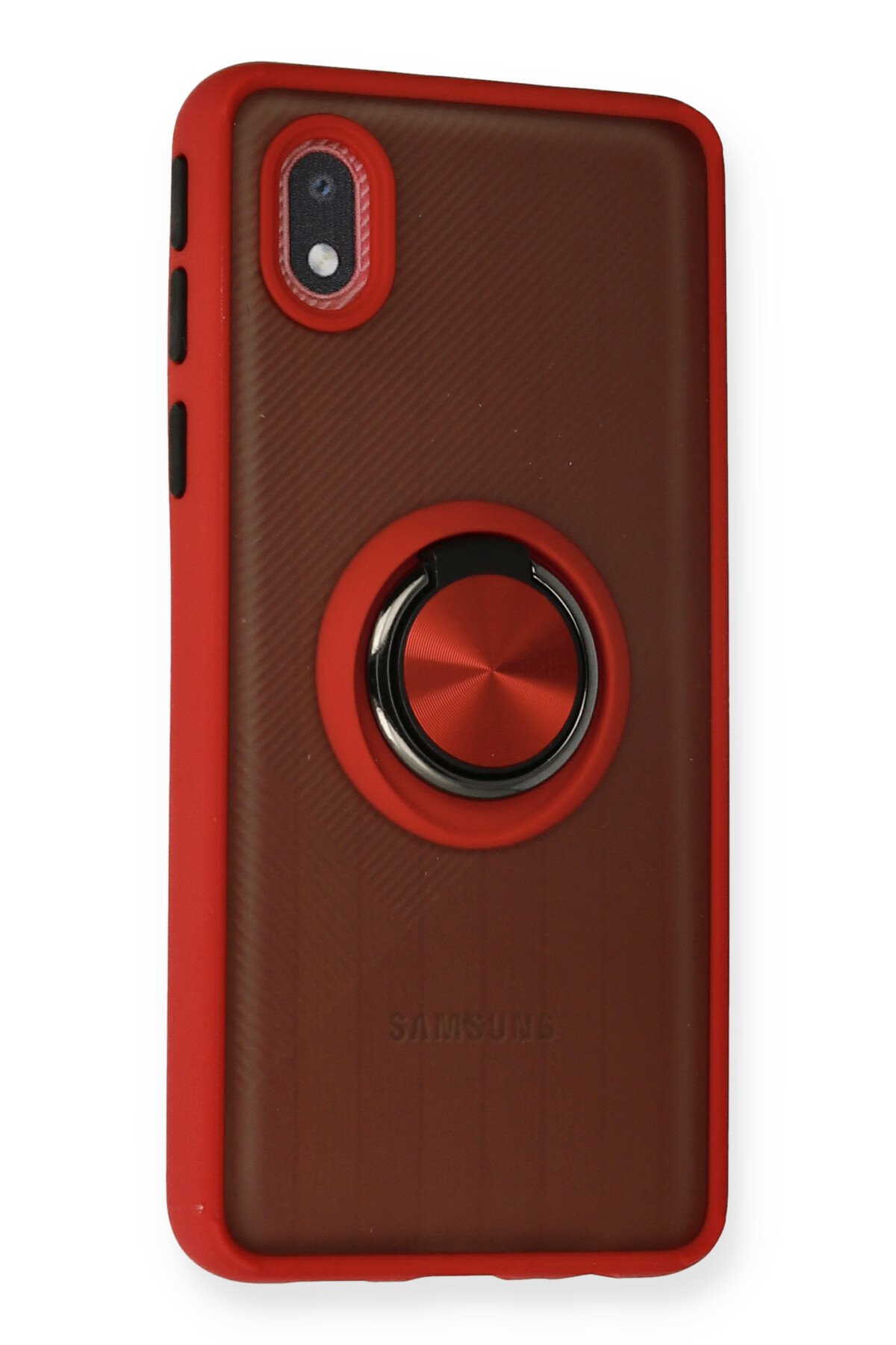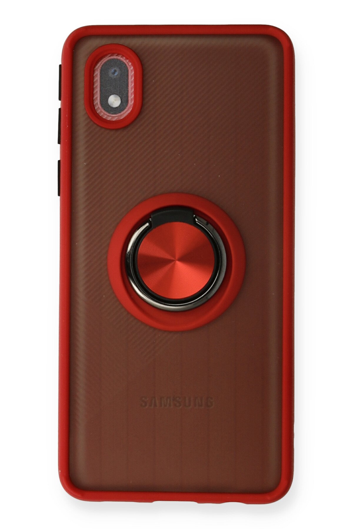 Newface Samsung Galaxy A01 Core Kılıf Montreal Yüzüklü Silikon Kapak – Kırmızı
