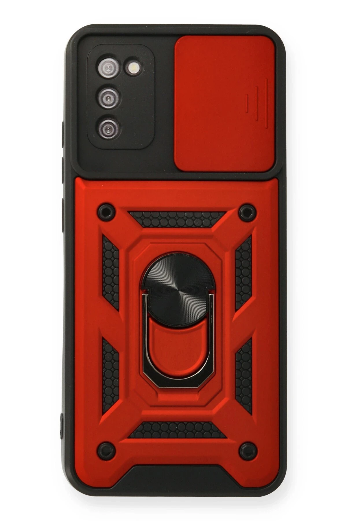 Newface Samsung Galaxy A03S Kılıf Pars Lens Yüzüklü Silikon – Kırmızı