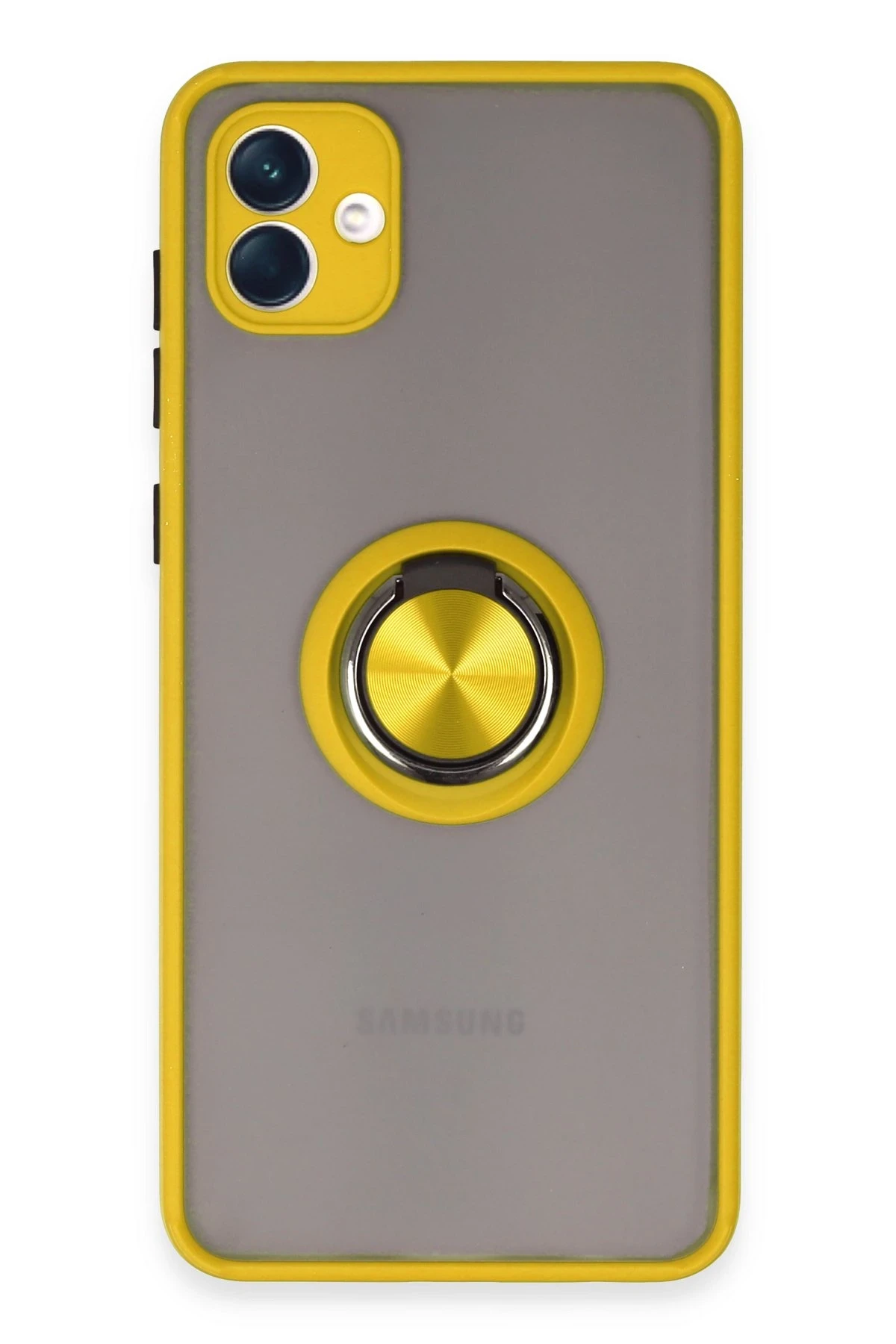 Newface Samsung Galaxy A04 Kılıf Montreal Yüzüklü Silikon Kapak – Sarı