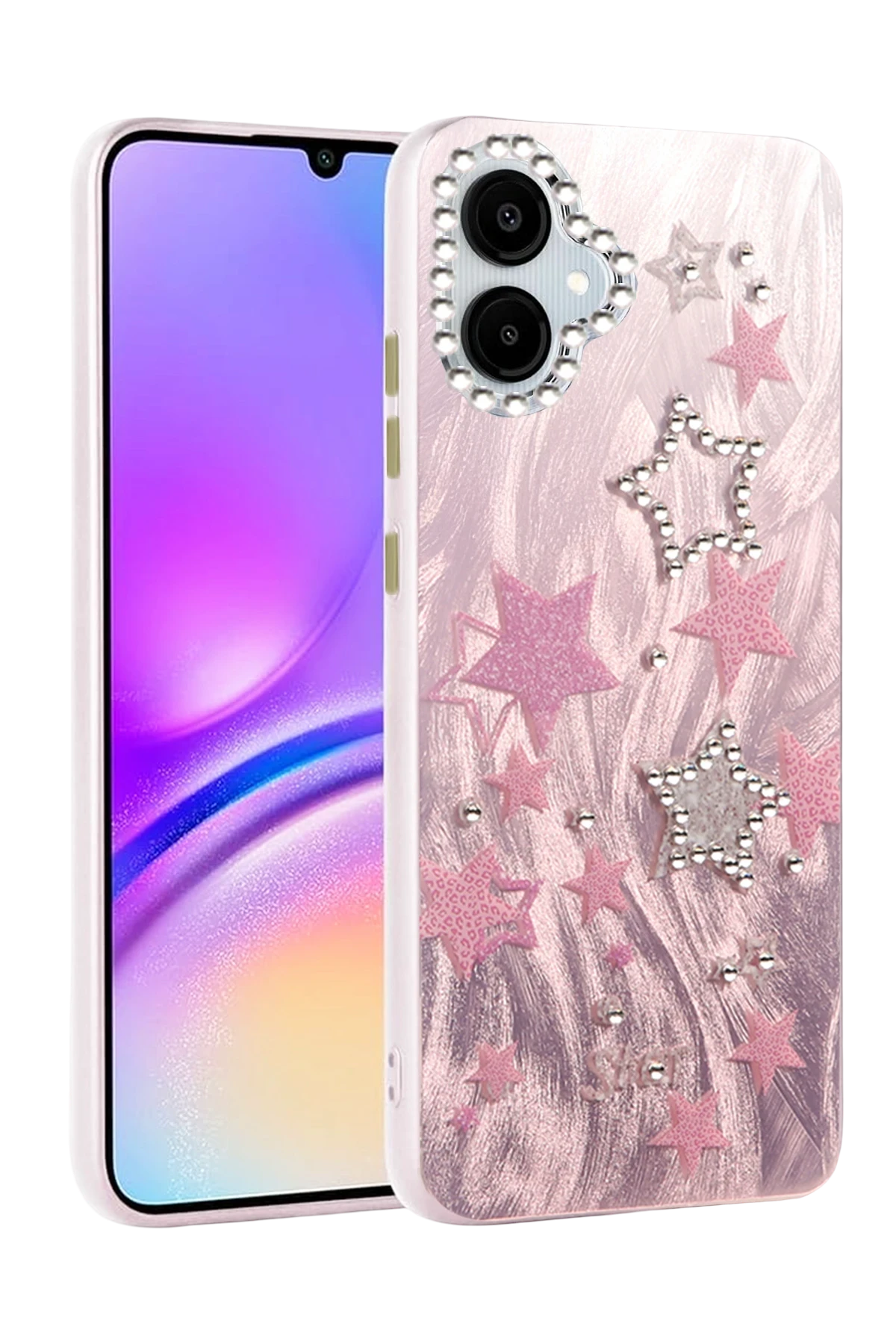 Kamera çevresinde yer alan parlak taş detaylar, hem zarafet hem de fonksiyonellik sunar.