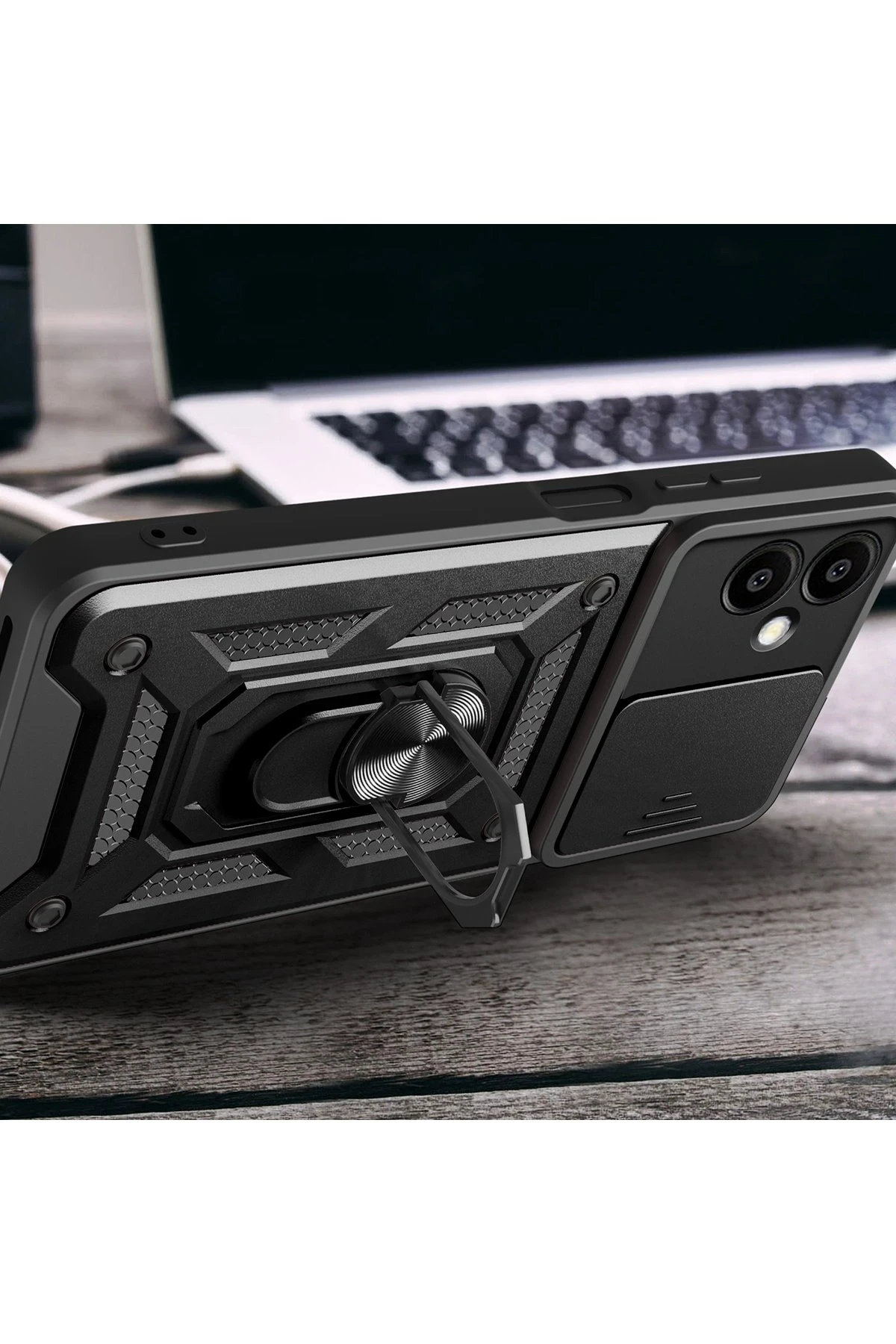 Newface Samsung Galaxy A06 Kılıf Pars Lens Yüzüklü Silikon – Siyah