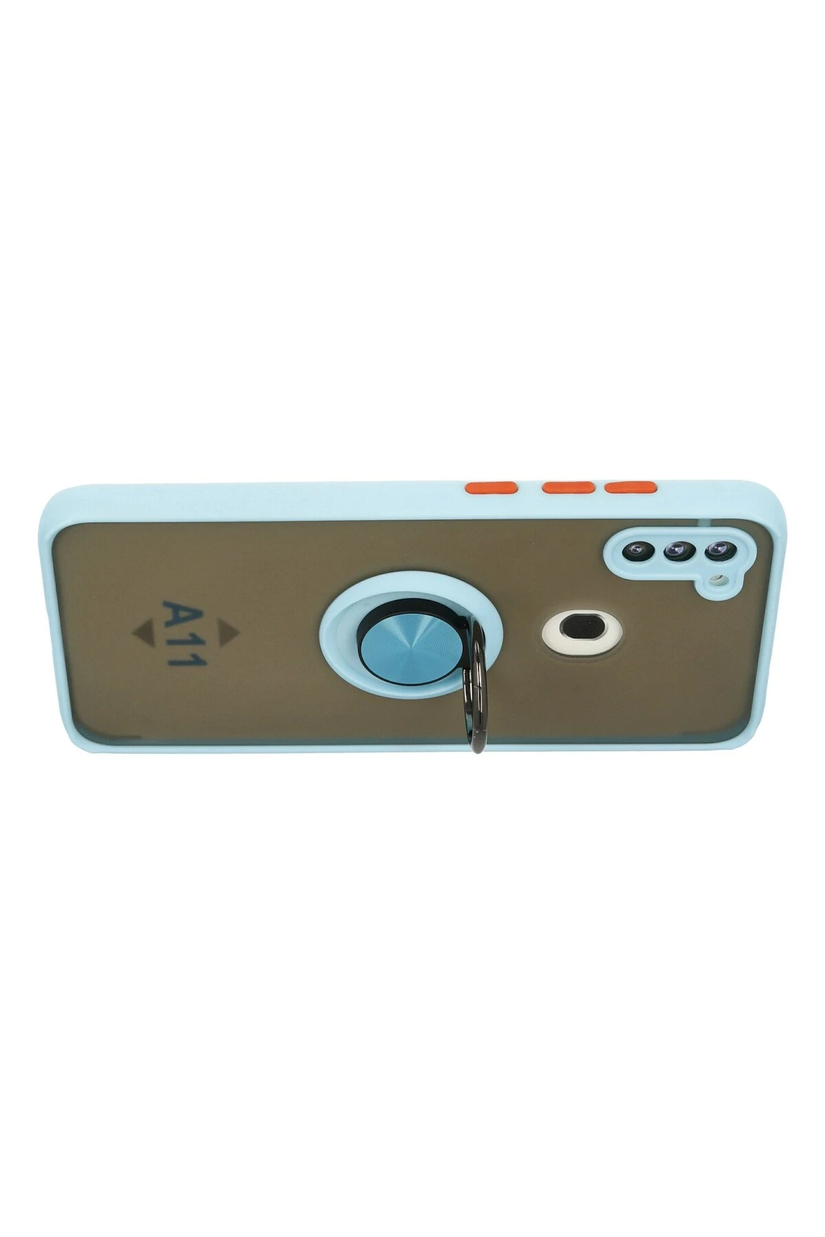 Newface Samsung Galaxy A11 Kılıf Montreal Yüzüklü Silikon Kapak – Buz Mavi