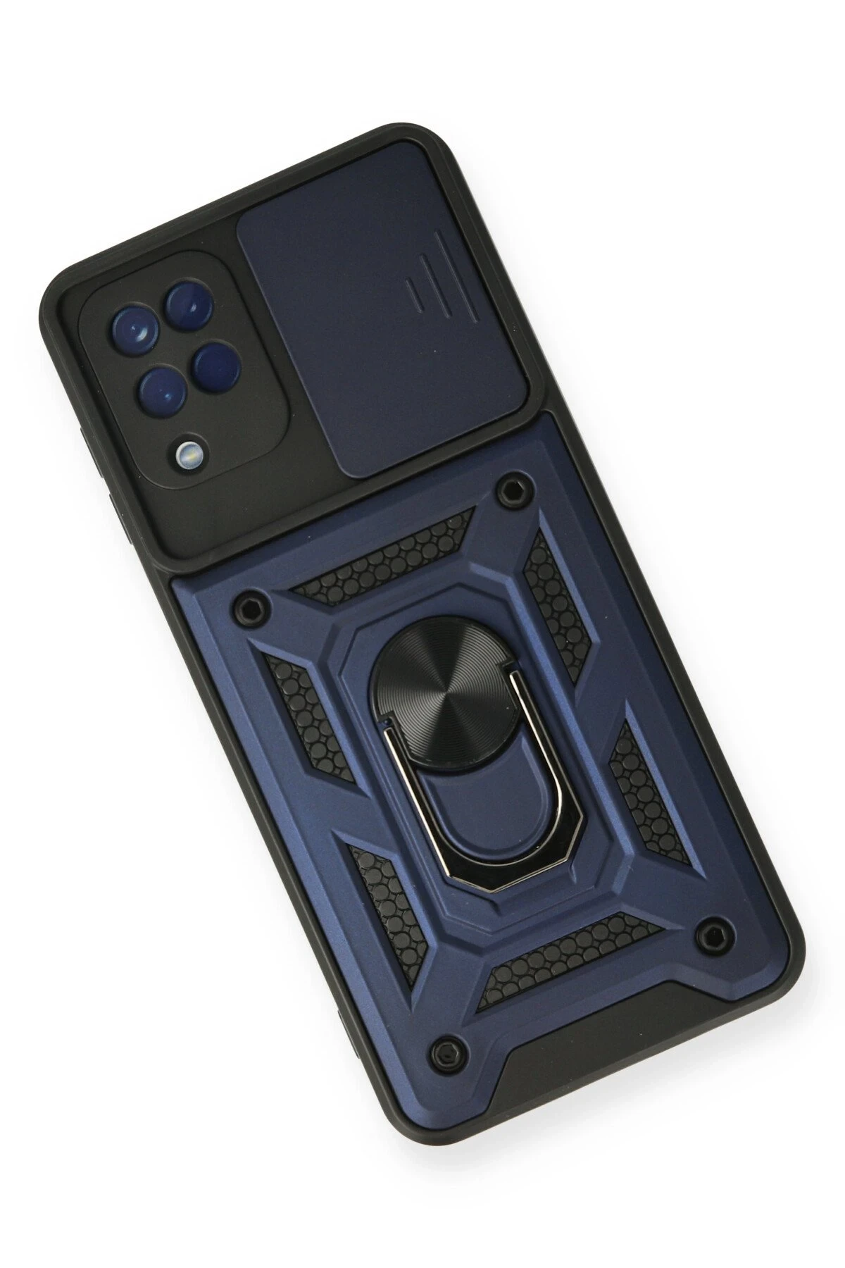 Newface Samsung Galaxy A12 Kılıf Pars Lens Yüzüklü Silikon – Lacivert