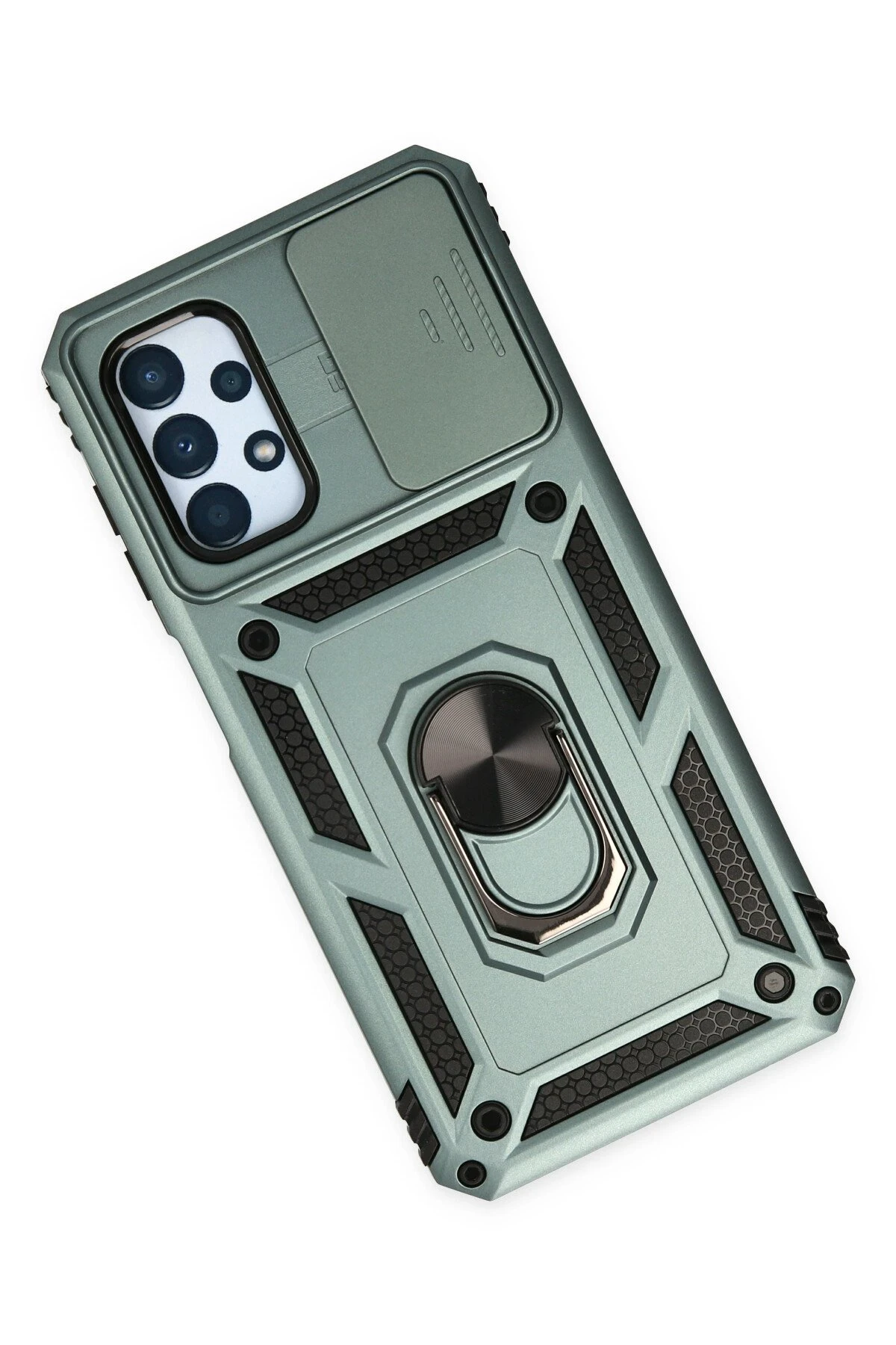 Newface Samsung Galaxy A13 4G Kılıf Pars Lens Yüzüklü Silikon – Yeşil