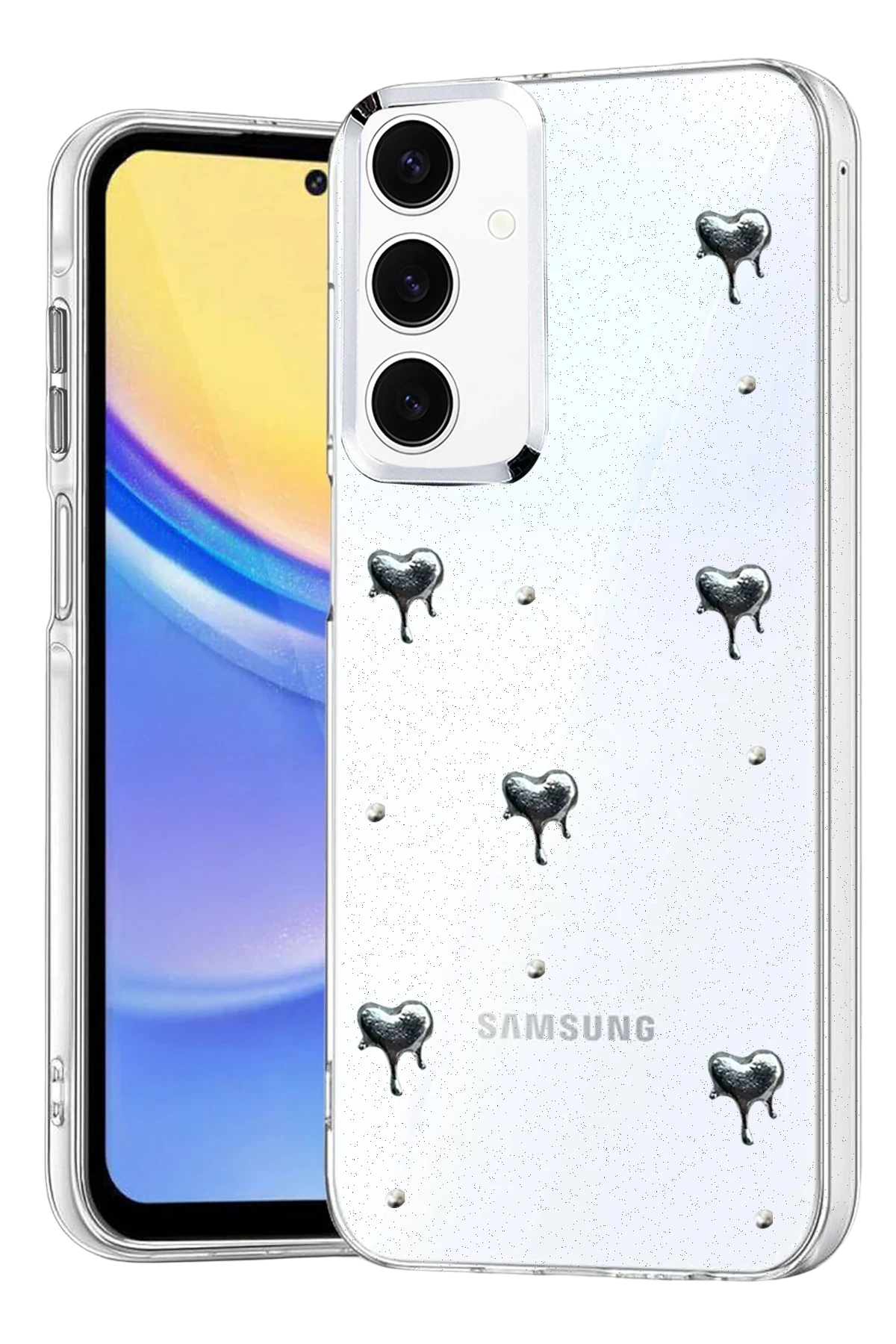 Fiyonk, yıldız, kelebek, lale, çiçek, kalp ve gül gibi zarif detaylarla süslenmiş bu kapak; simli, şeffaf tasarımıyla estetik ve korumayı bir araya getiriyor. Telefonunuzu yalnızca dış etkenlerden korumakla kalmaz, aynı zamanda ona göz alıcı bir stil kazandırır. Günlük kullanımda dikkat çeken tasarımı sayesinde cihazınızın şıklığı öne çıkar.