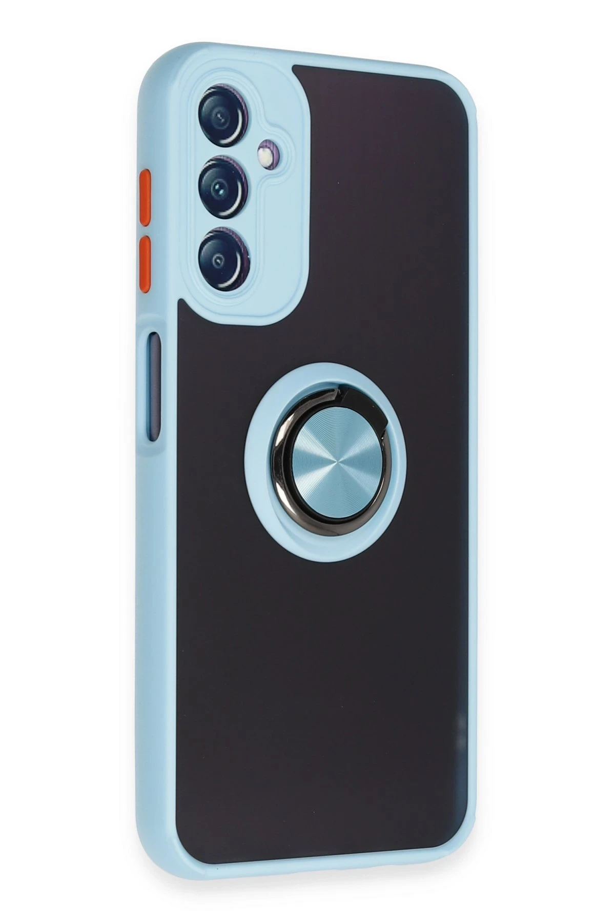 Newface Samsung Galaxy A14 4G Kılıf Montreal Yüzüklü Silikon Kapak – Buz Mavi