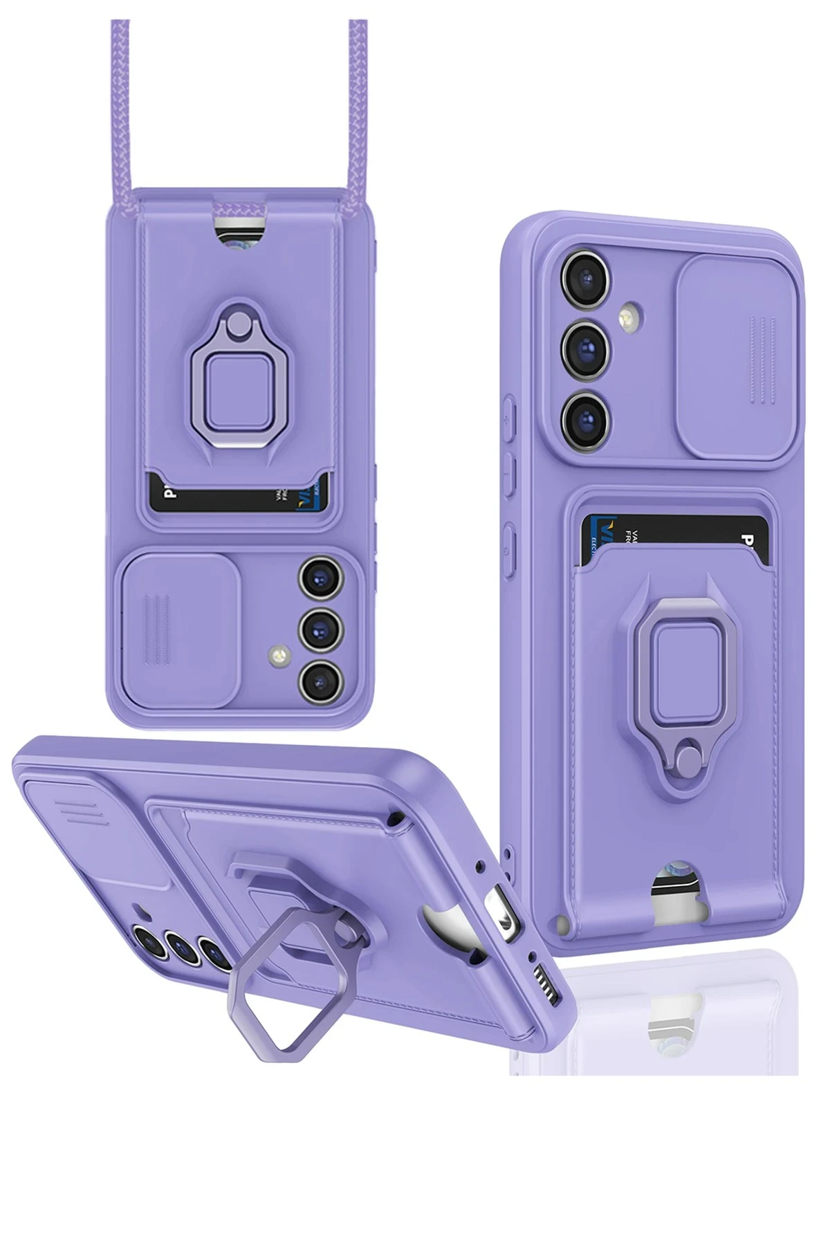 Newface Samsung Galaxy A14 4G Kılıf Zuma Kartvizitli Yüzüklü Silikon – Lila
