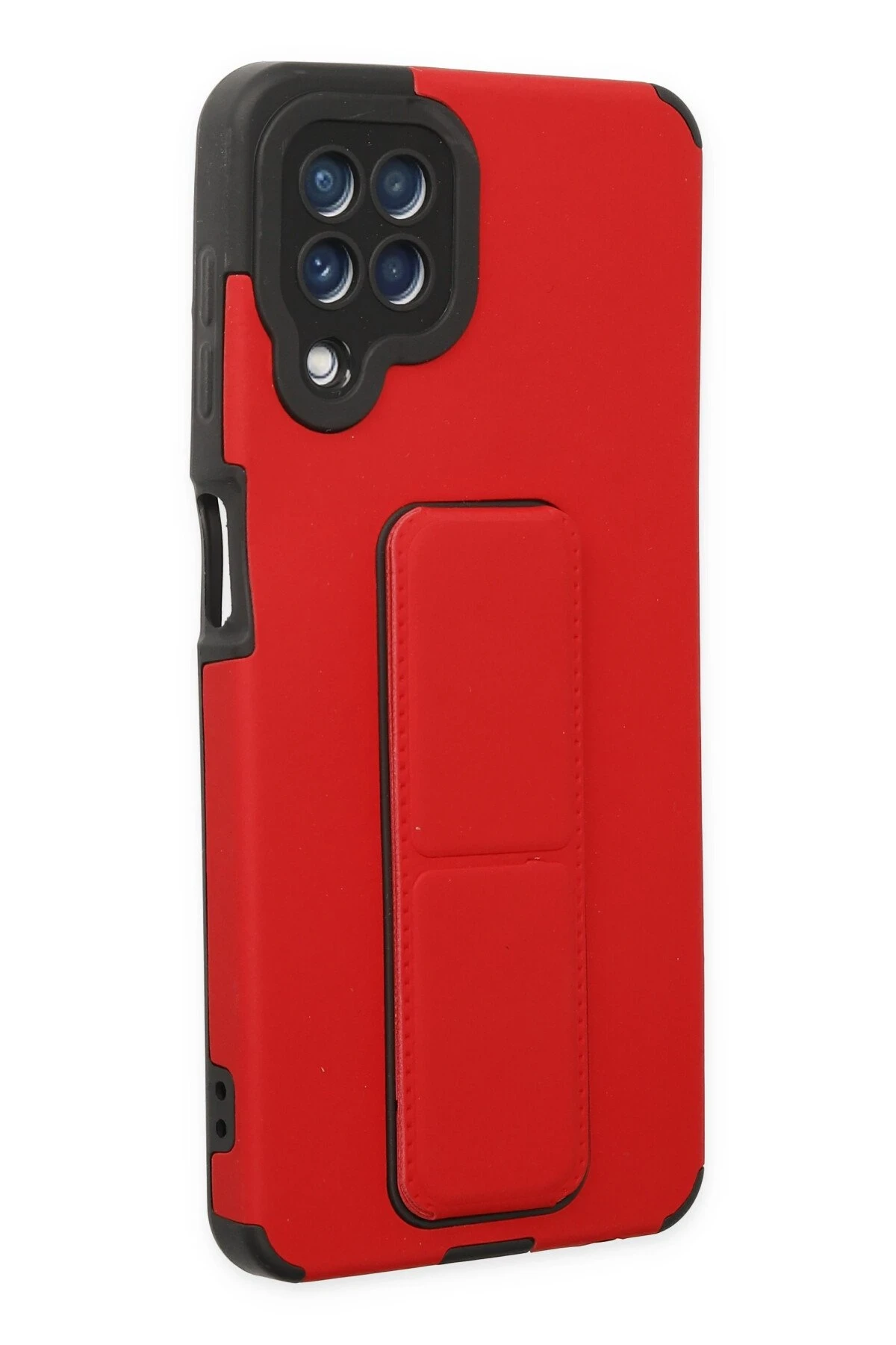 Newface Samsung Galaxy A22 Kılıf Mega Standlı Silikon – Kırmızı