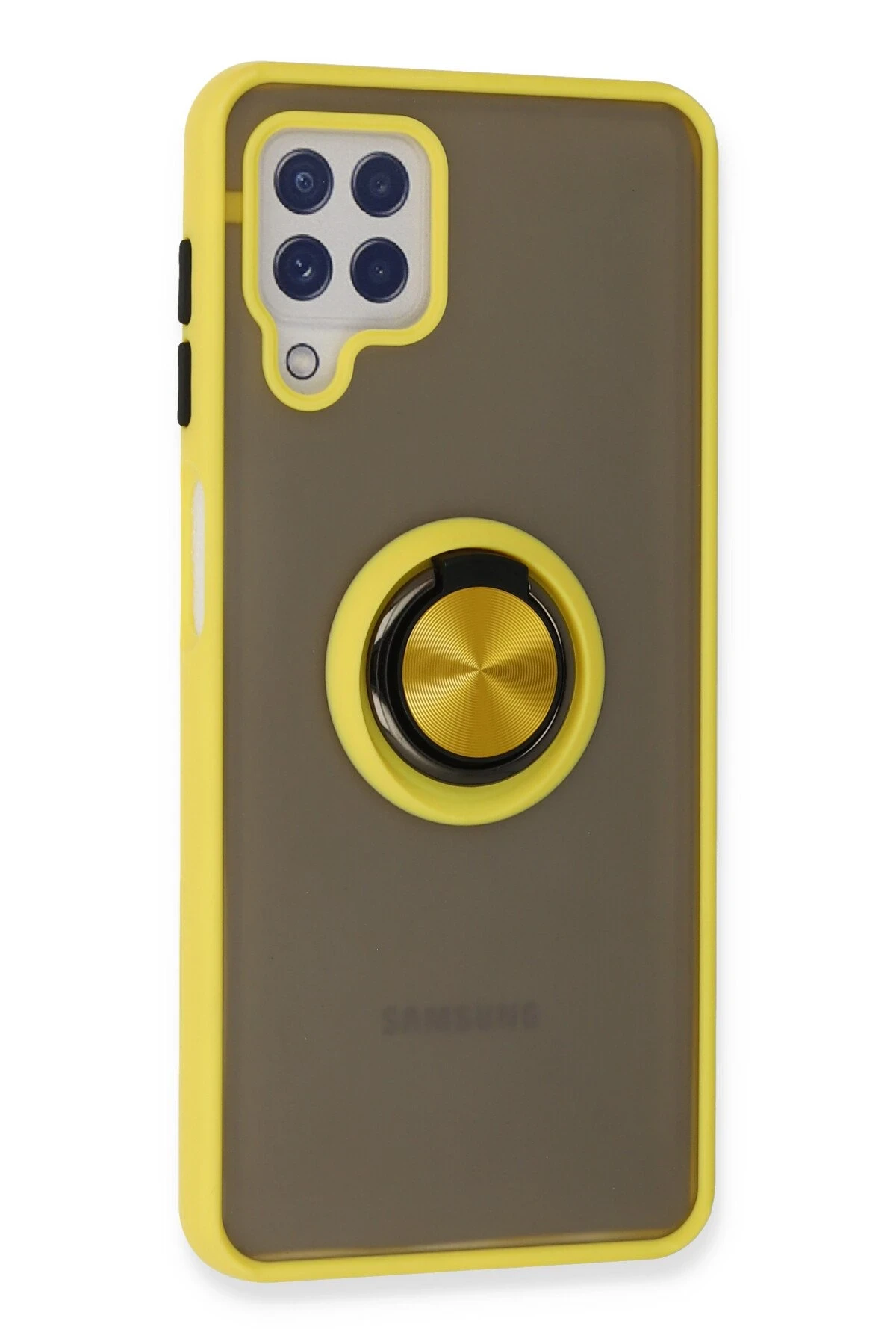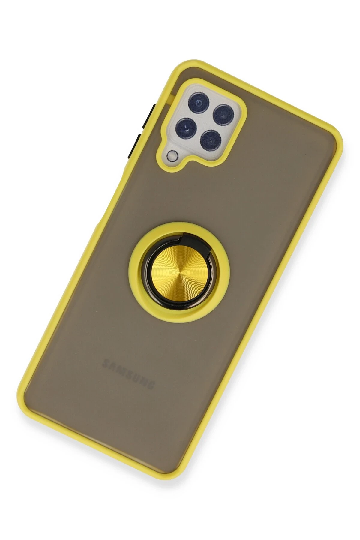 Newface Samsung Galaxy A22 Kılıf Montreal Yüzüklü Silikon Kapak – Sarı