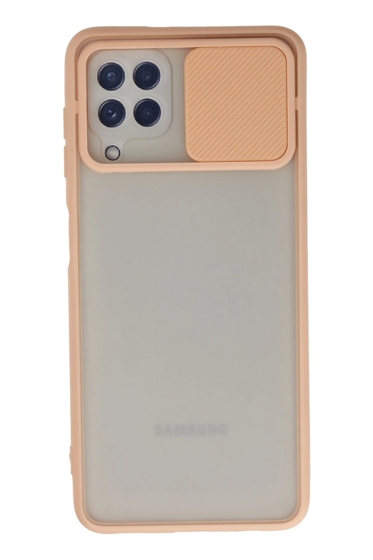 Newface Samsung Galaxy A22 Kılıf Palm Buzlu Kamera Sürgülü Silikon – Pembe