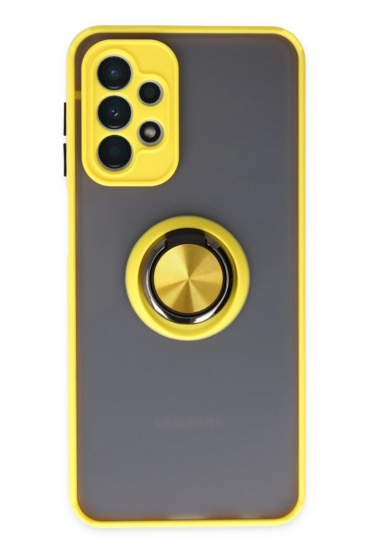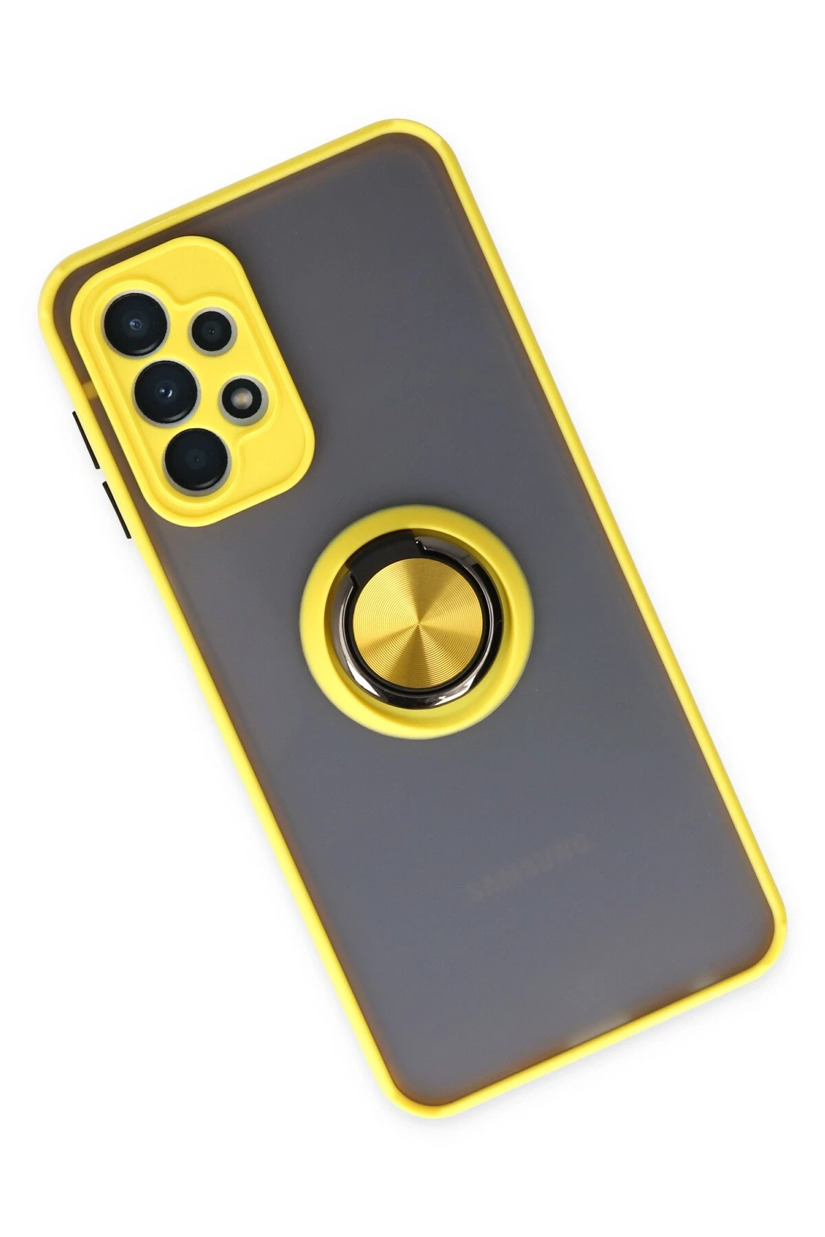 Newface Samsung Galaxy A23 4G Kılıf Montreal Yüzüklü Silikon Kapak – Sarı