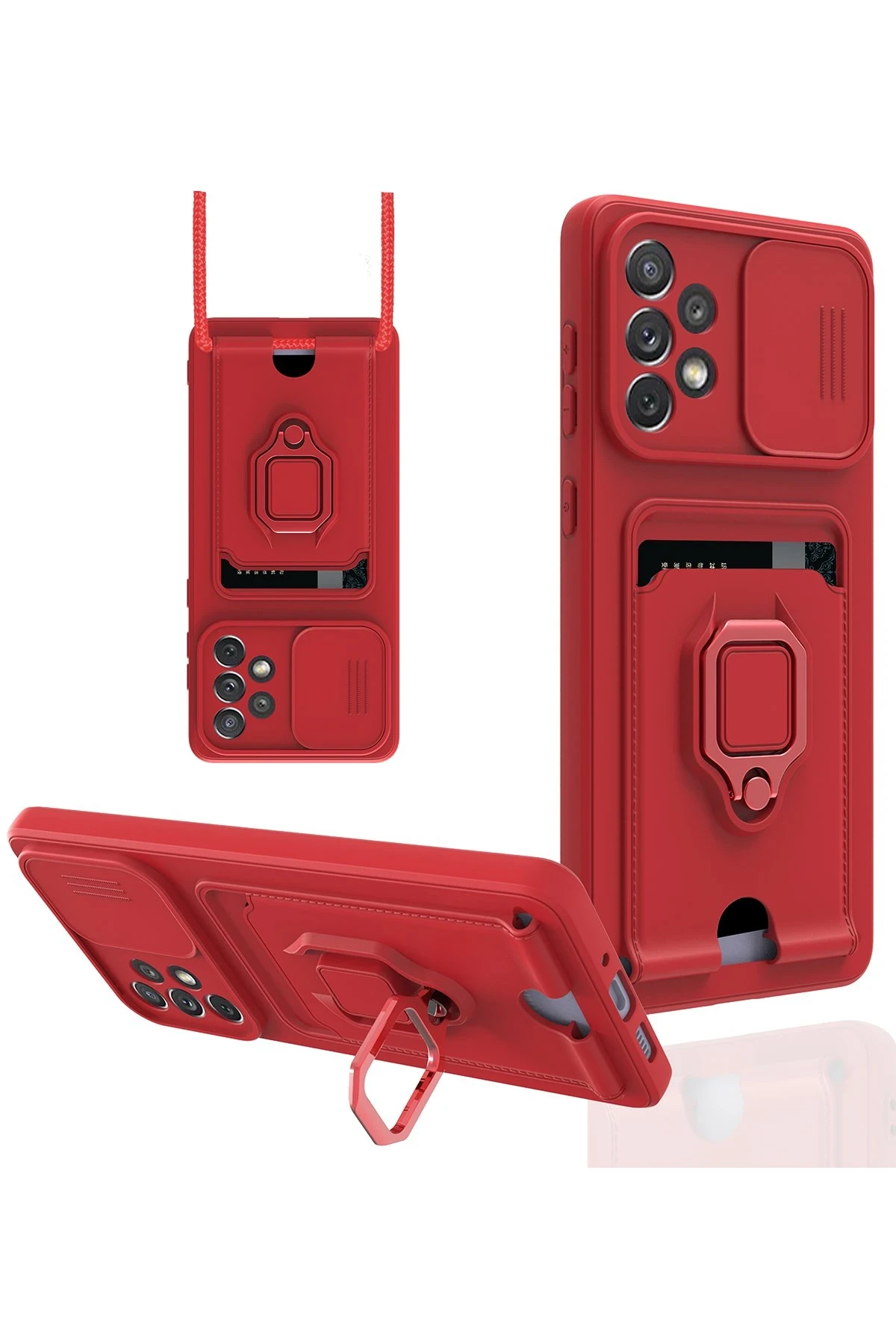 Newface Samsung Galaxy A33 5G Kılıf Zuma Kartvizitli Yüzüklü Silikon – Kırmızı