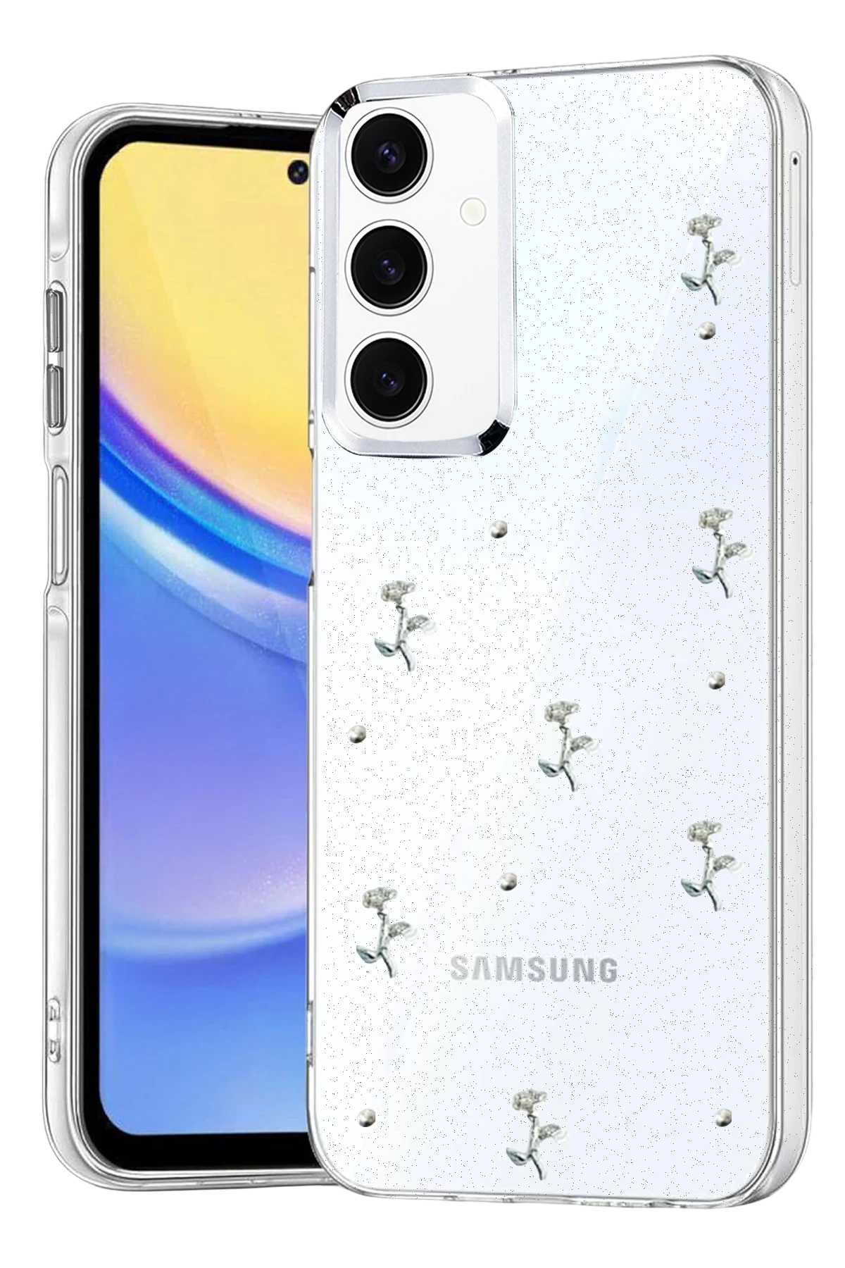 Fiyonk, yıldız, kelebek, lale, çiçek, kalp ve gül gibi zarif detaylarla süslenmiş bu kapak; simli, şeffaf tasarımıyla estetik ve korumayı bir araya getiriyor. Telefonunuzu yalnızca dış etkenlerden korumakla kalmaz, aynı zamanda ona göz alıcı bir stil kazandırır. Günlük kullanımda dikkat çeken tasarımı sayesinde cihazınızın şıklığı öne çıkar.