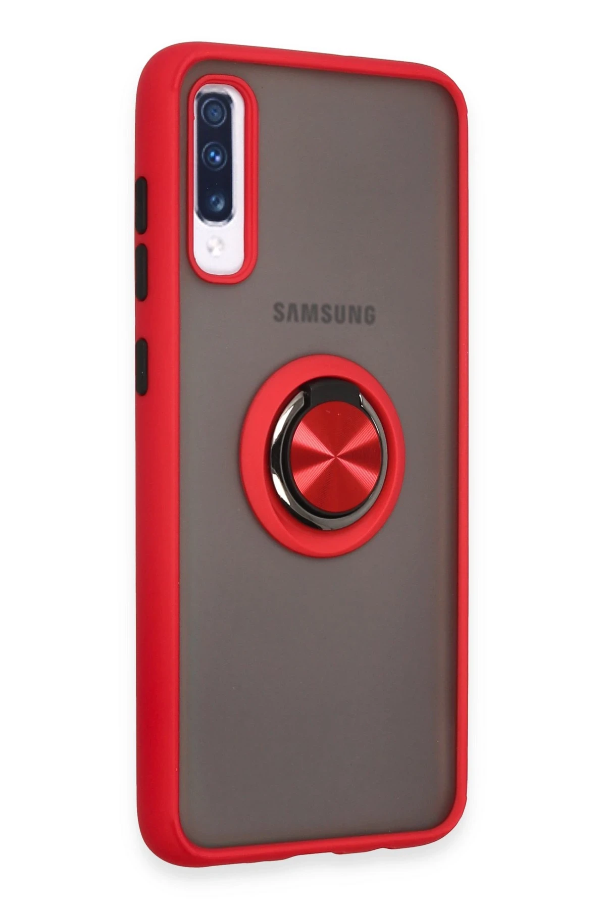 Newface Samsung Galaxy A70 Kılıf Montreal Yüzüklü Silikon Kapak – Kırmızı