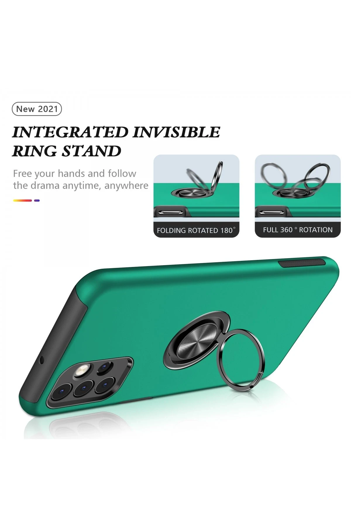 Newface Samsung Galaxy A72 Kılıf Elit Yüzüklü Kapak – Yeşil