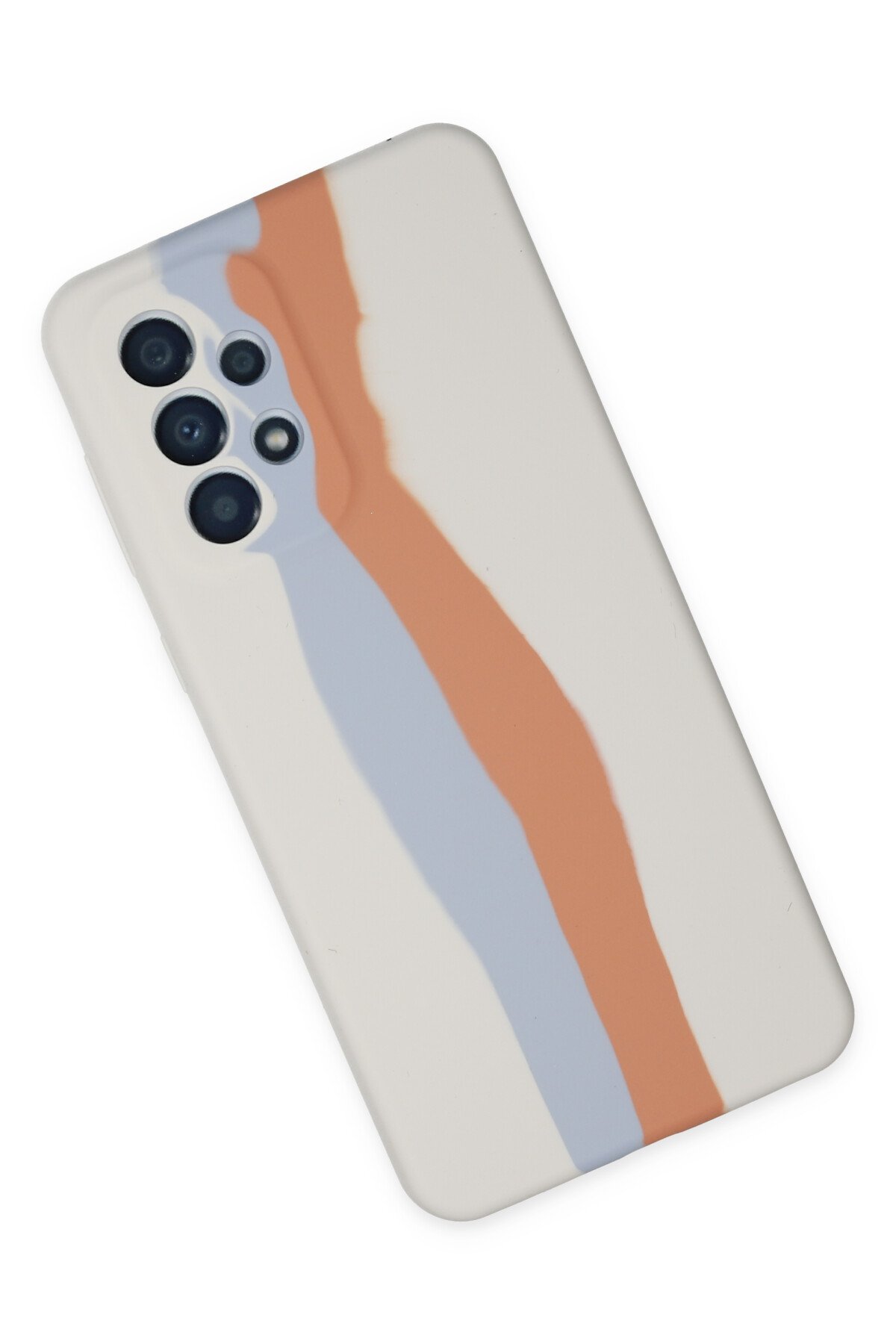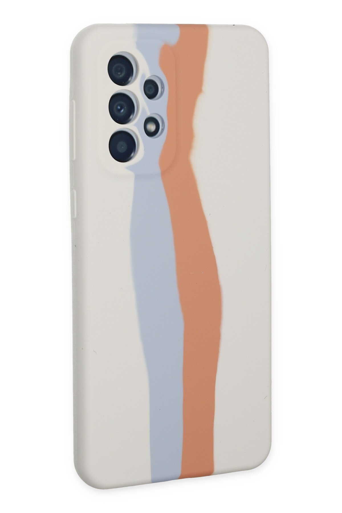 Newface Samsung Galaxy A73 5G Kılıf Ebruli Lansman Silikon – Beyaz-Turuncu