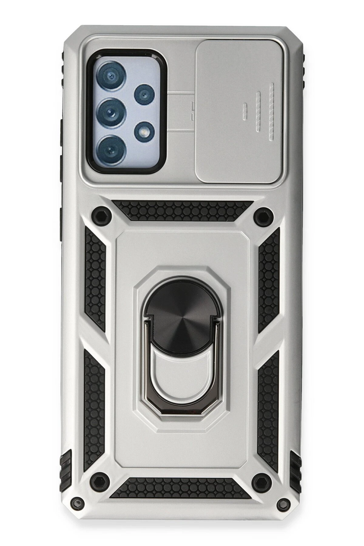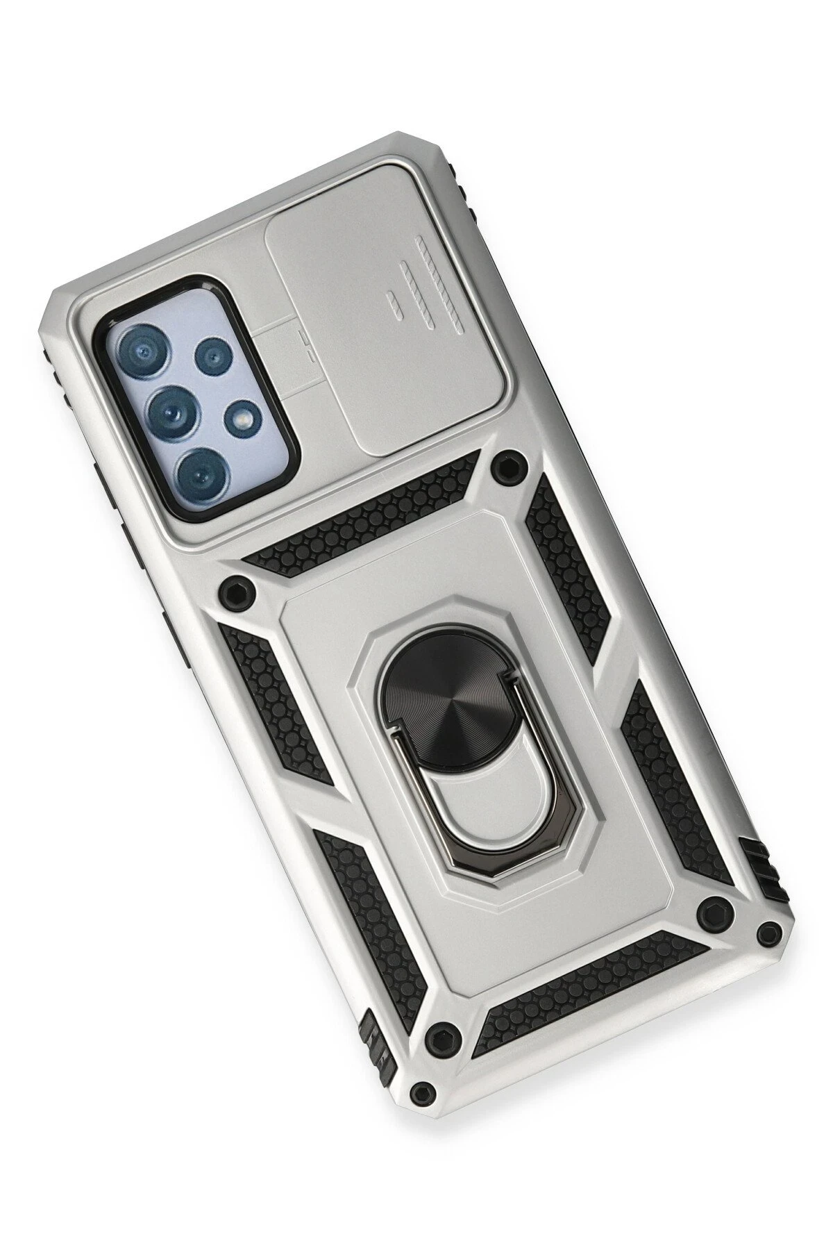 Newface Samsung Galaxy A73 5G Kılıf Pars Lens Yüzüklü Silikon – Gümüş