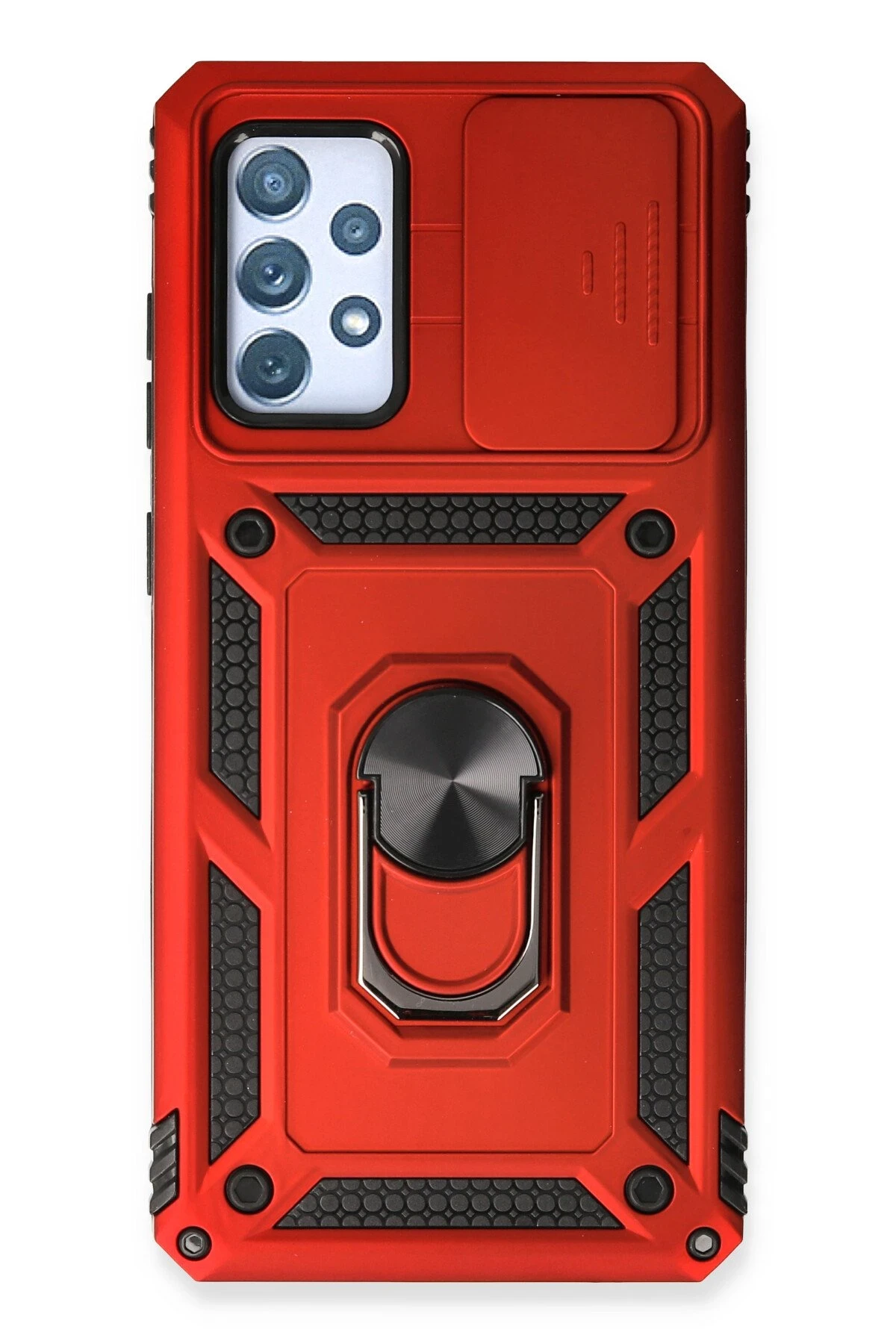 Newface Samsung Galaxy A73 5G Kılıf Pars Lens Yüzüklü Silikon – Kırmızı