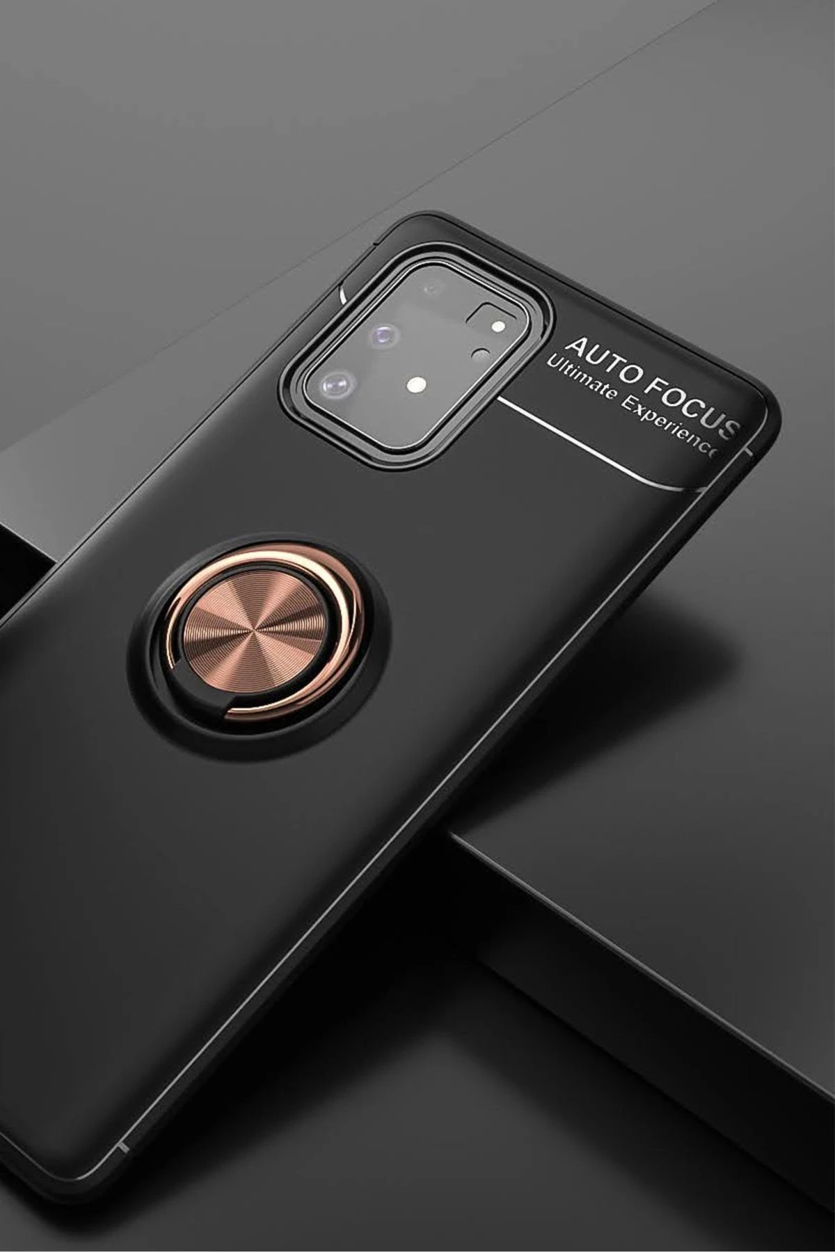 Newface Samsung Galaxy A91 / S10 Lite Kılıf Range Yüzüklü Silikon – Siyah-Gold