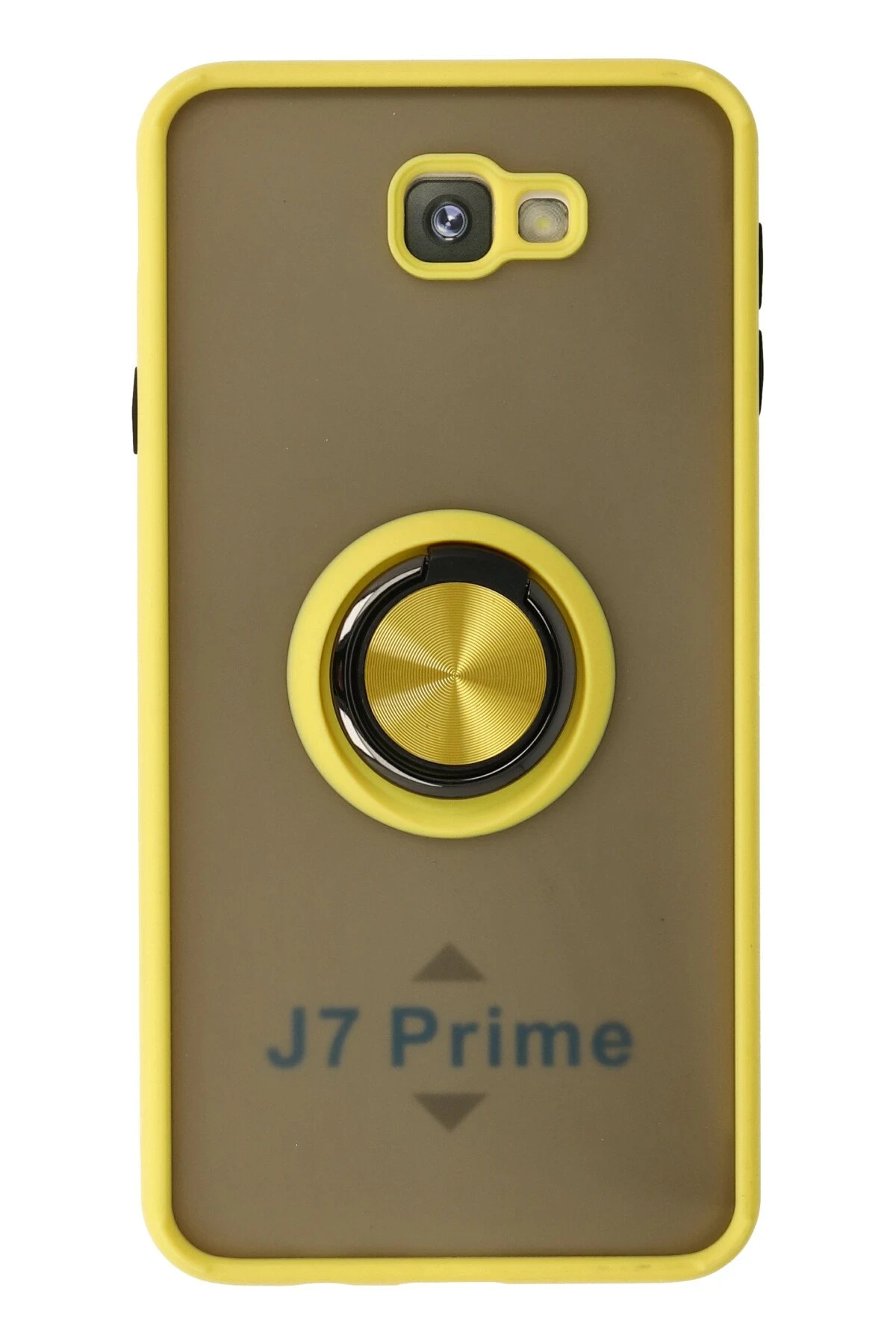 Newface Samsung Galaxy J7 Prime Kılıf Montreal Yüzüklü Silikon Kapak – Sarı