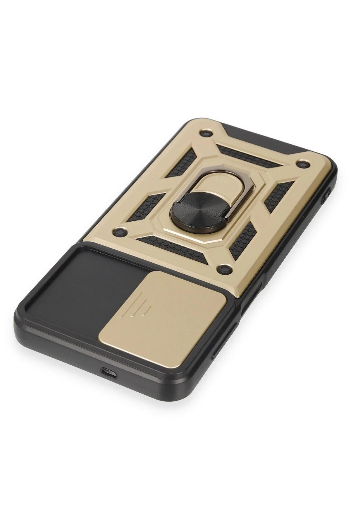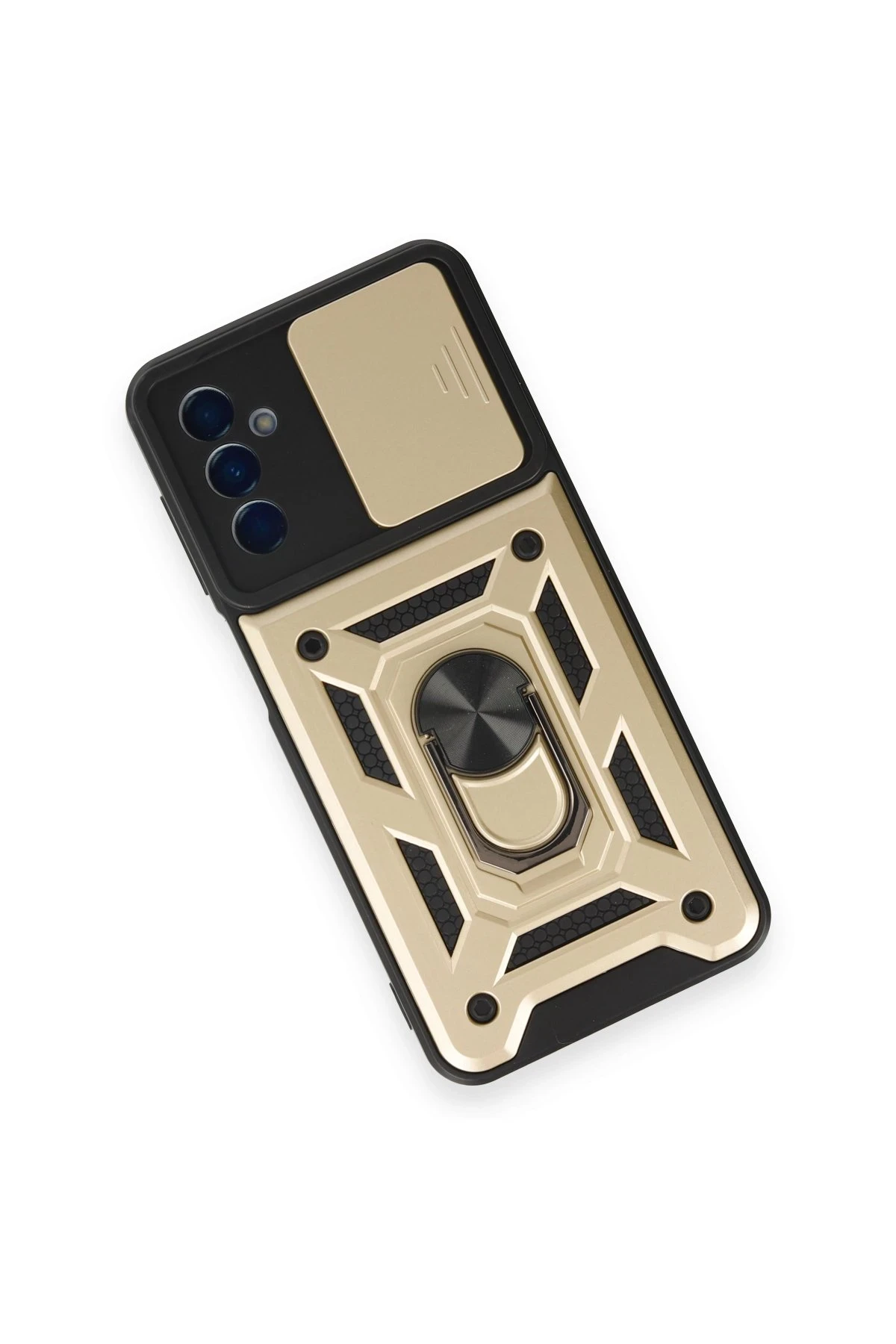 Newface Samsung Galaxy M14 5G Kılıf Pars Lens Yüzüklü Silikon – Gold