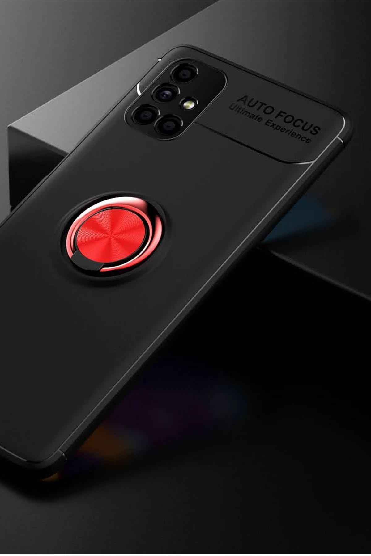 Newface Samsung Galaxy M51 Kılıf Range Yüzüklü Silikon – Siyah-Kırmızı