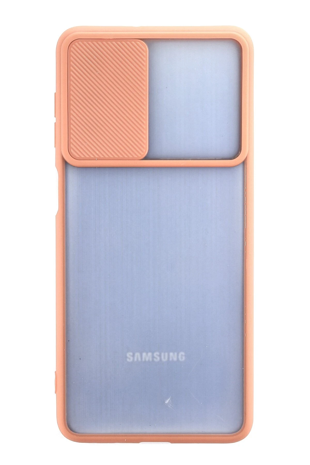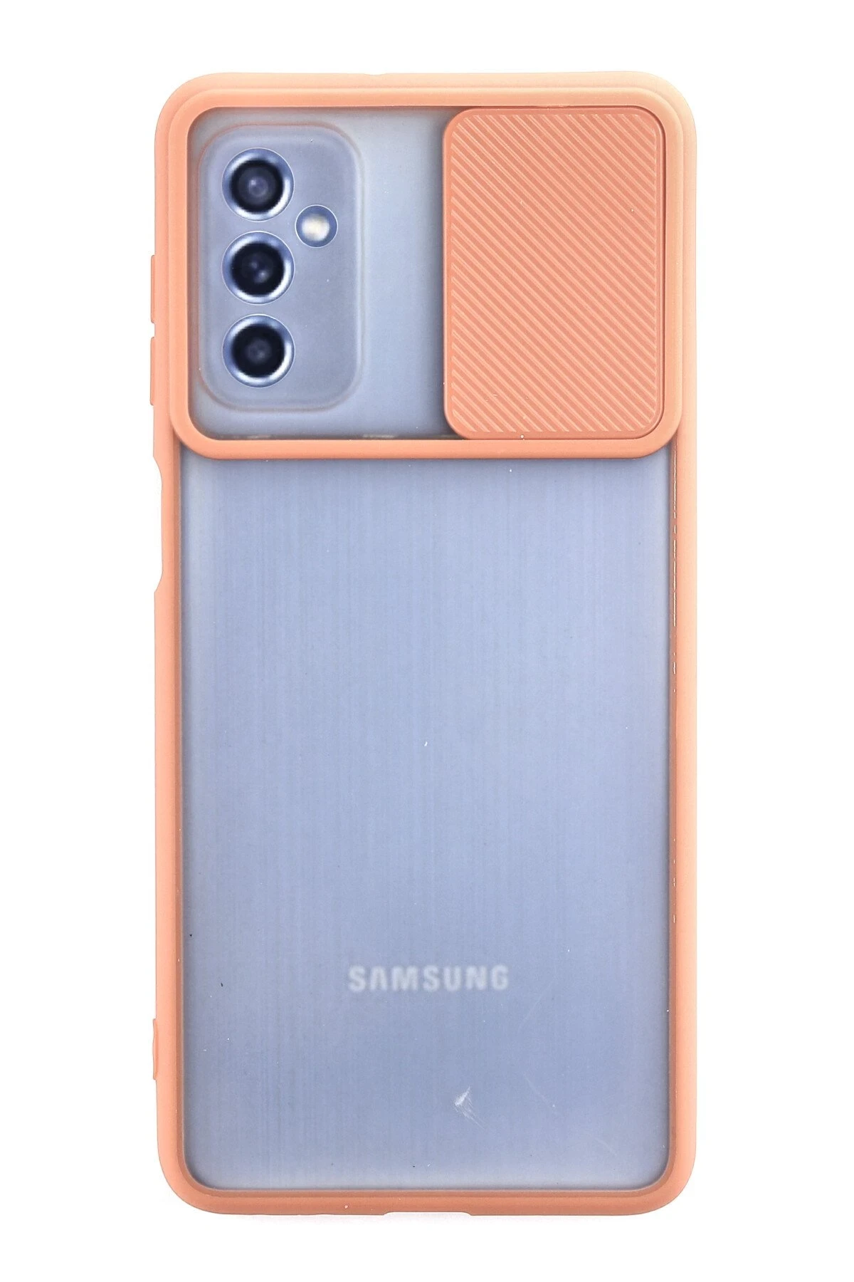 Newface Samsung Galaxy M52 5G Kılıf Palm Buzlu Kamera Sürgülü Silikon – Pembe
