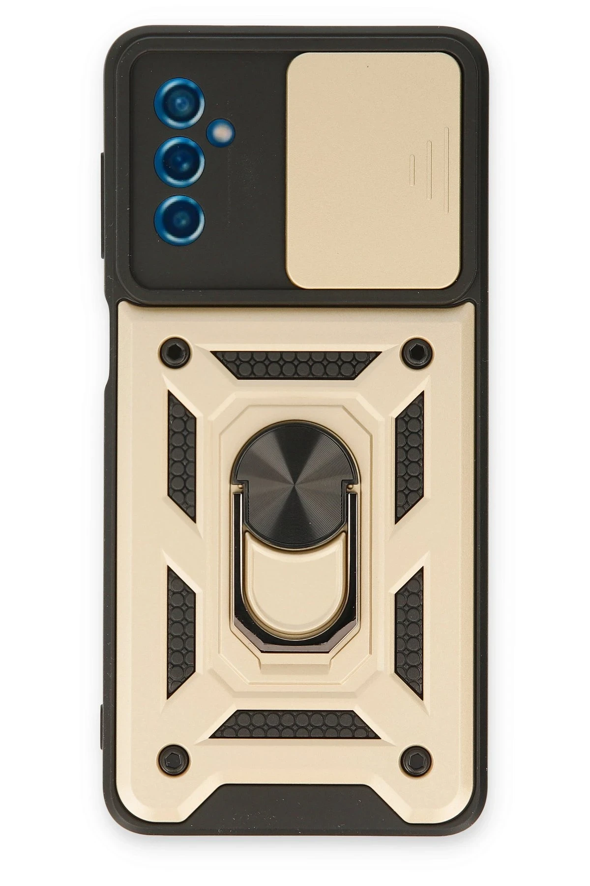 Newface Samsung Galaxy M52 5G Kılıf Pars Lens Yüzüklü Silikon – Gold