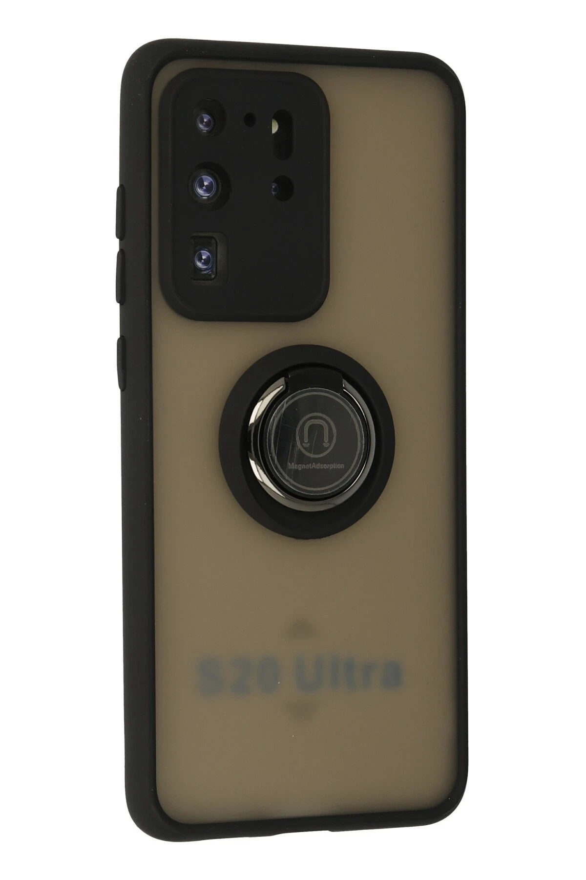 Newface Samsung Galaxy S20 Ultra Kılıf Montreal Yüzüklü Silikon Kapak – Siyah