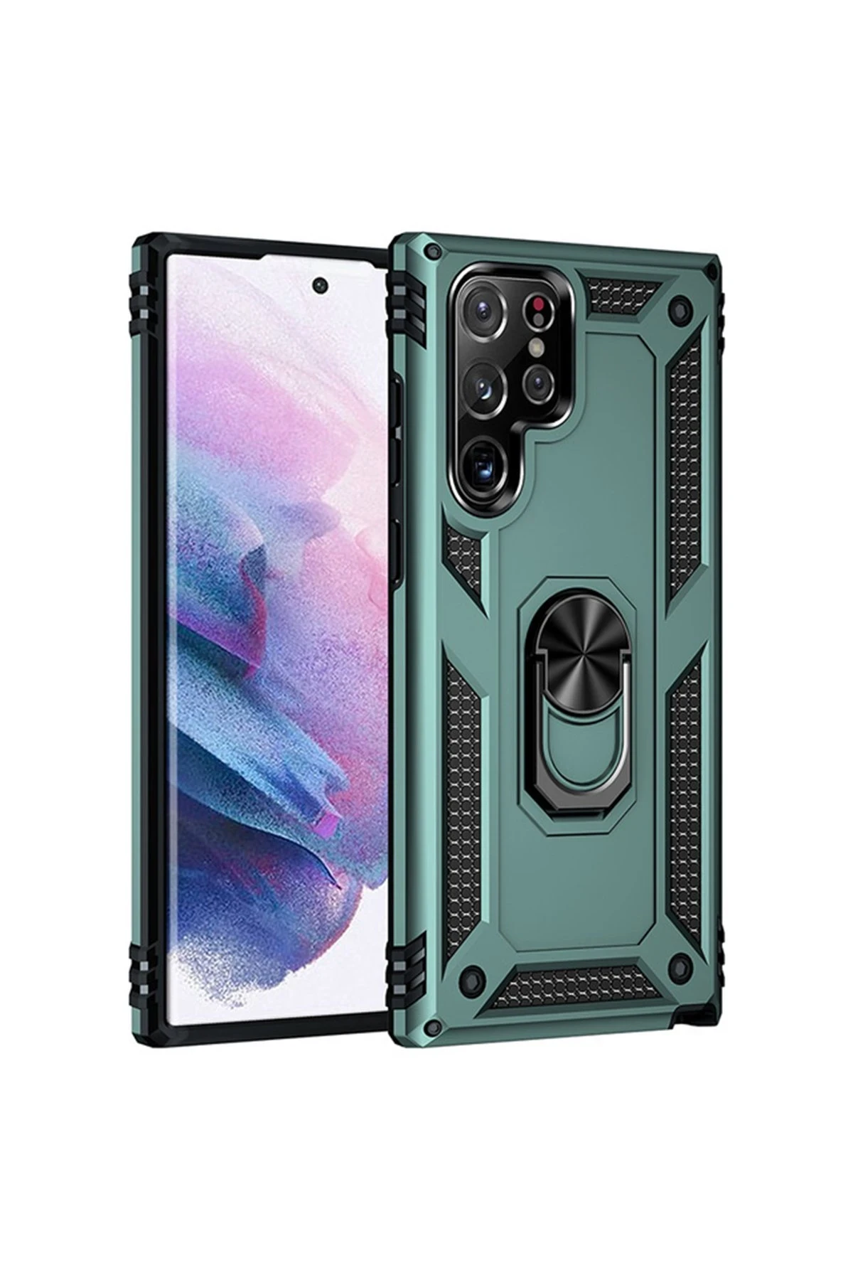Newface Samsung Galaxy S21 Ultra Kılıf Sofya Yüzüklü Silikon Kapak – Yeşil