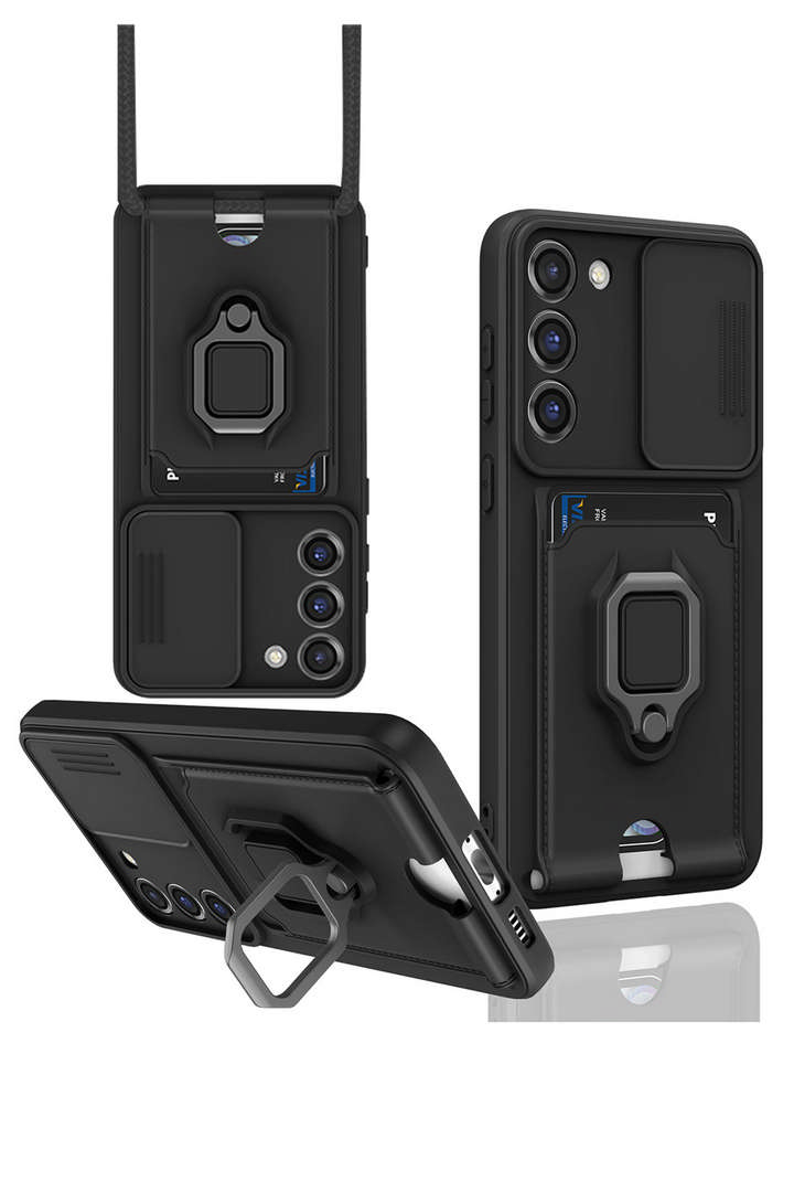 Newface Samsung Galaxy S23 Plus Kılıf Zuma Kartvizitli Yüzüklü Silikon – Siyah