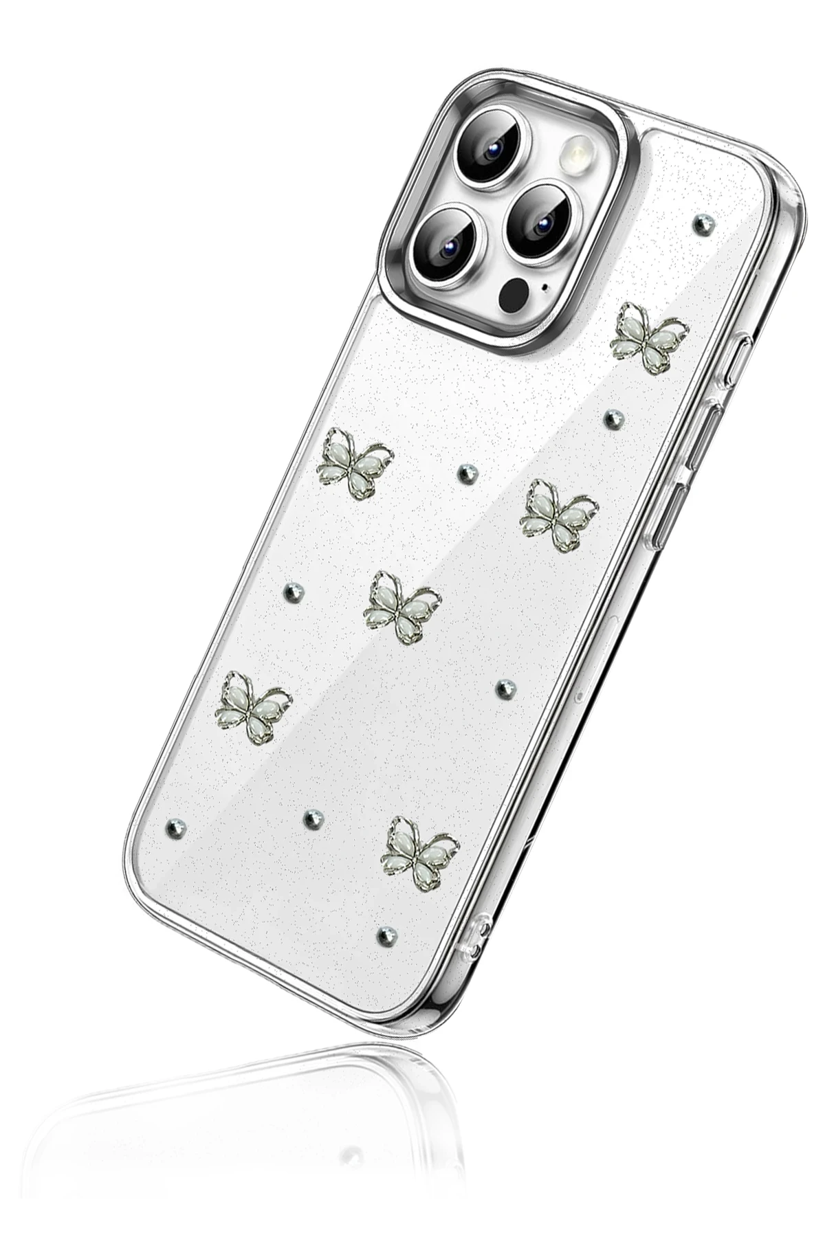 Fiyonk, yıldız, kelebek, lale, çiçek, kalp ve gül gibi zarif detaylarla süslenmiş bu kapak; simli, şeffaf tasarımıyla estetik ve korumayı bir araya getiriyor. Telefonunuzu yalnızca dış etkenlerden korumakla kalmaz, aynı zamanda ona göz alıcı bir stil kazandırır. Günlük kullanımda dikkat çeken tasarımı sayesinde cihazınızın şıklığı öne çıkar.