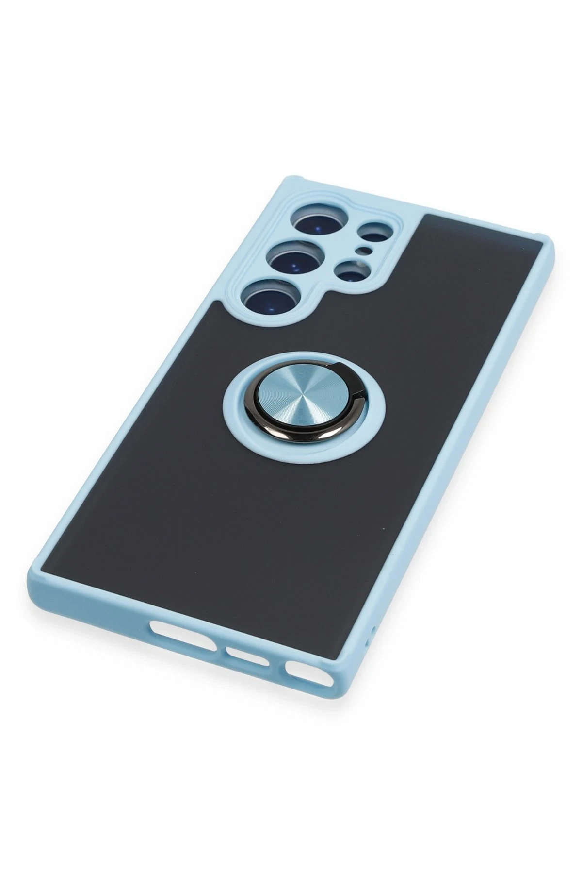 Newface Samsung Galaxy S23 Ultra Kılıf Montreal Yüzüklü Silikon Kapak – Buz Mavi