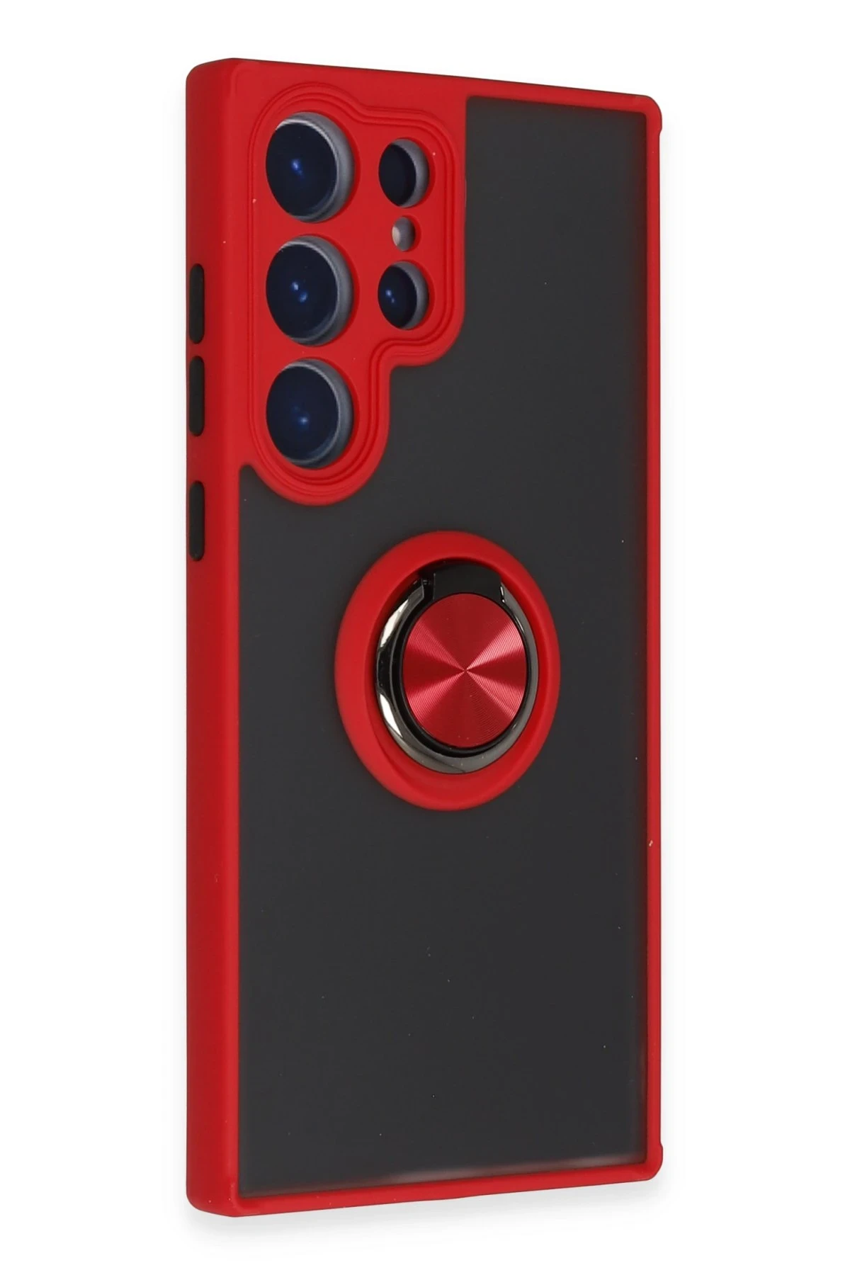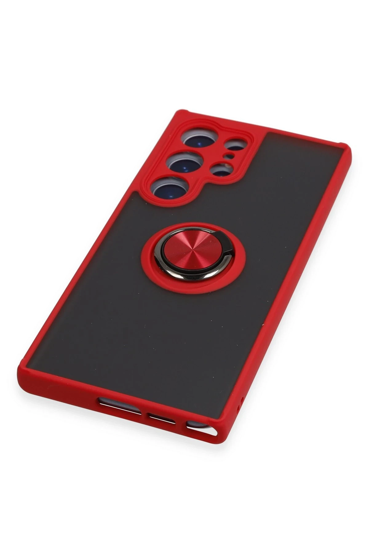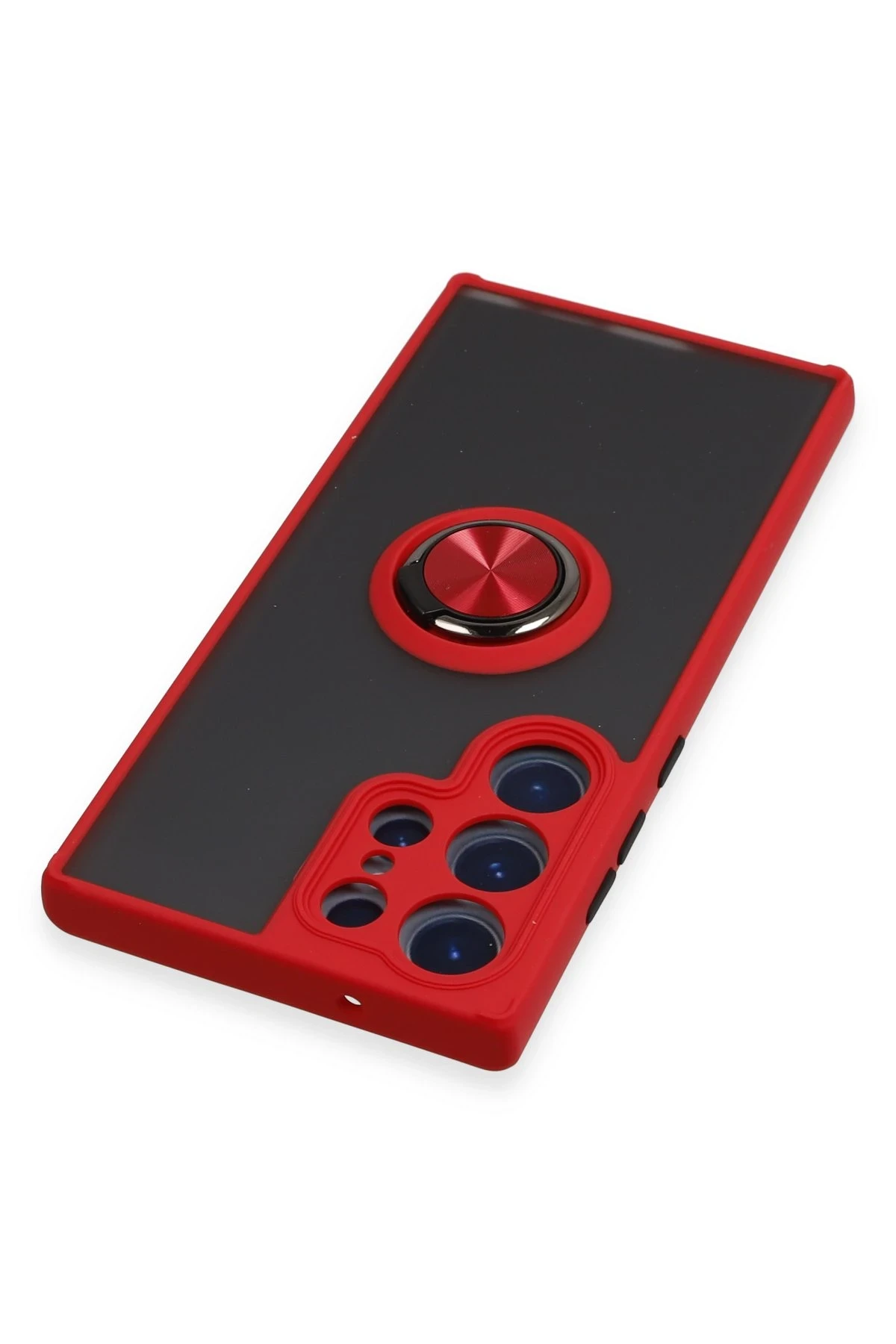 Newface Samsung Galaxy S23 Ultra Kılıf Montreal Yüzüklü Silikon Kapak – Kırmızı