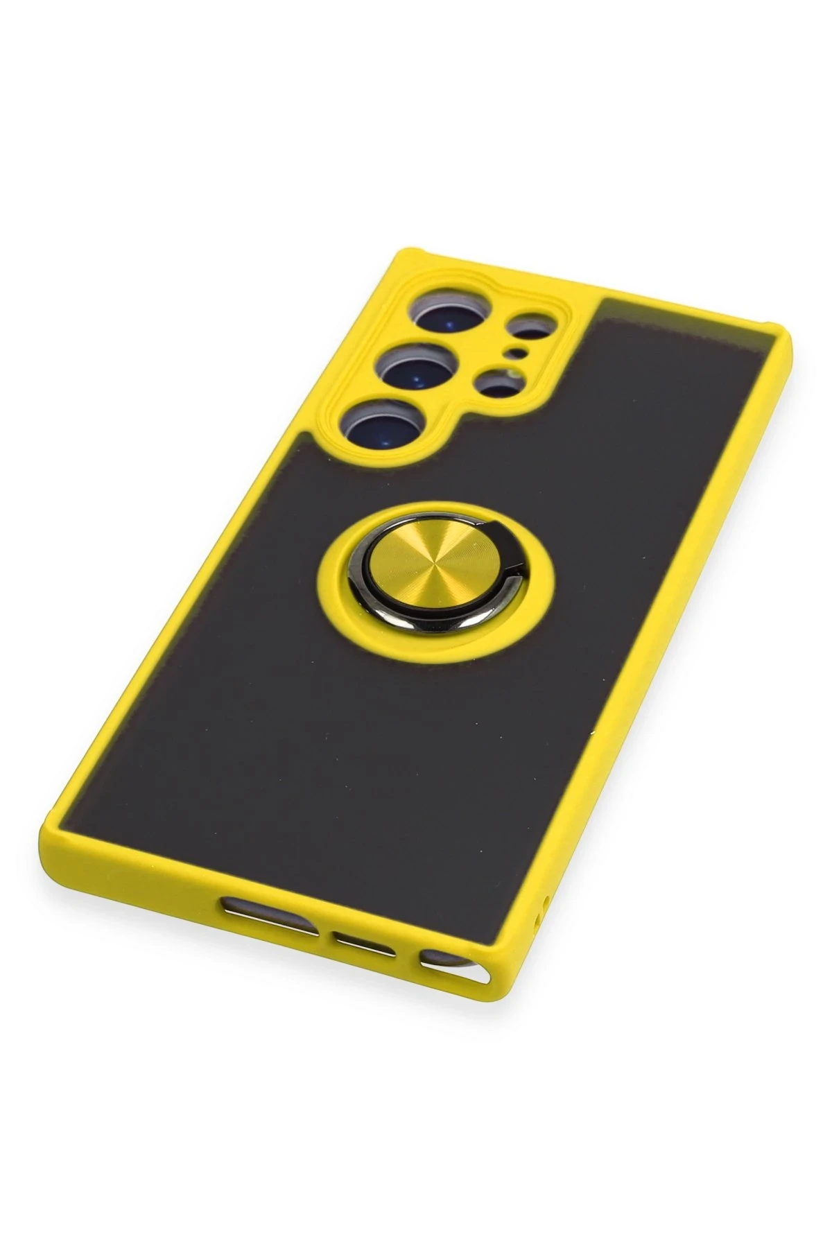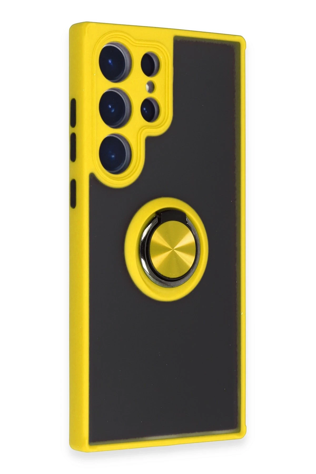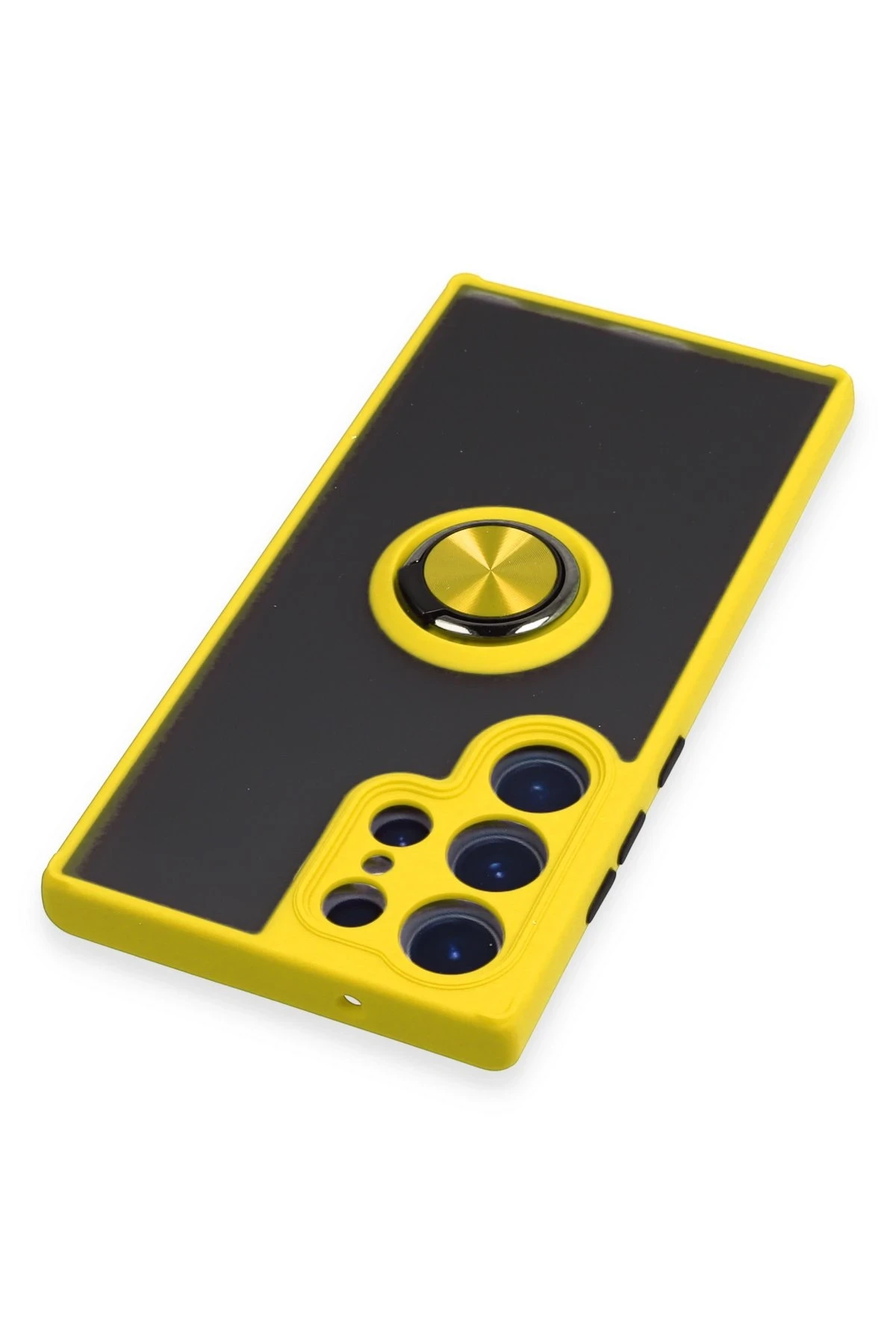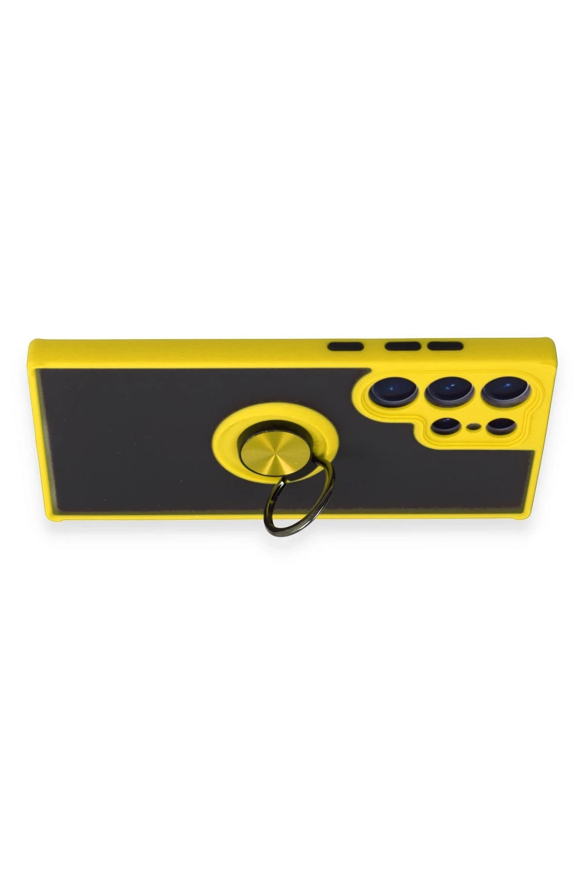 Newface Samsung Galaxy S23 Ultra Kılıf Montreal Yüzüklü Silikon Kapak – Sarı