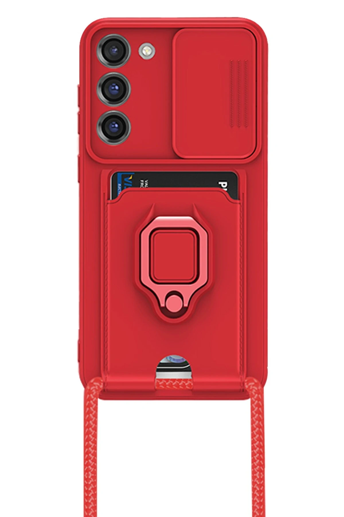 Newface Samsung Galaxy S24 Plus Kılıf Zuma Kartvizitli Yüzüklü Silikon – Kırmızı