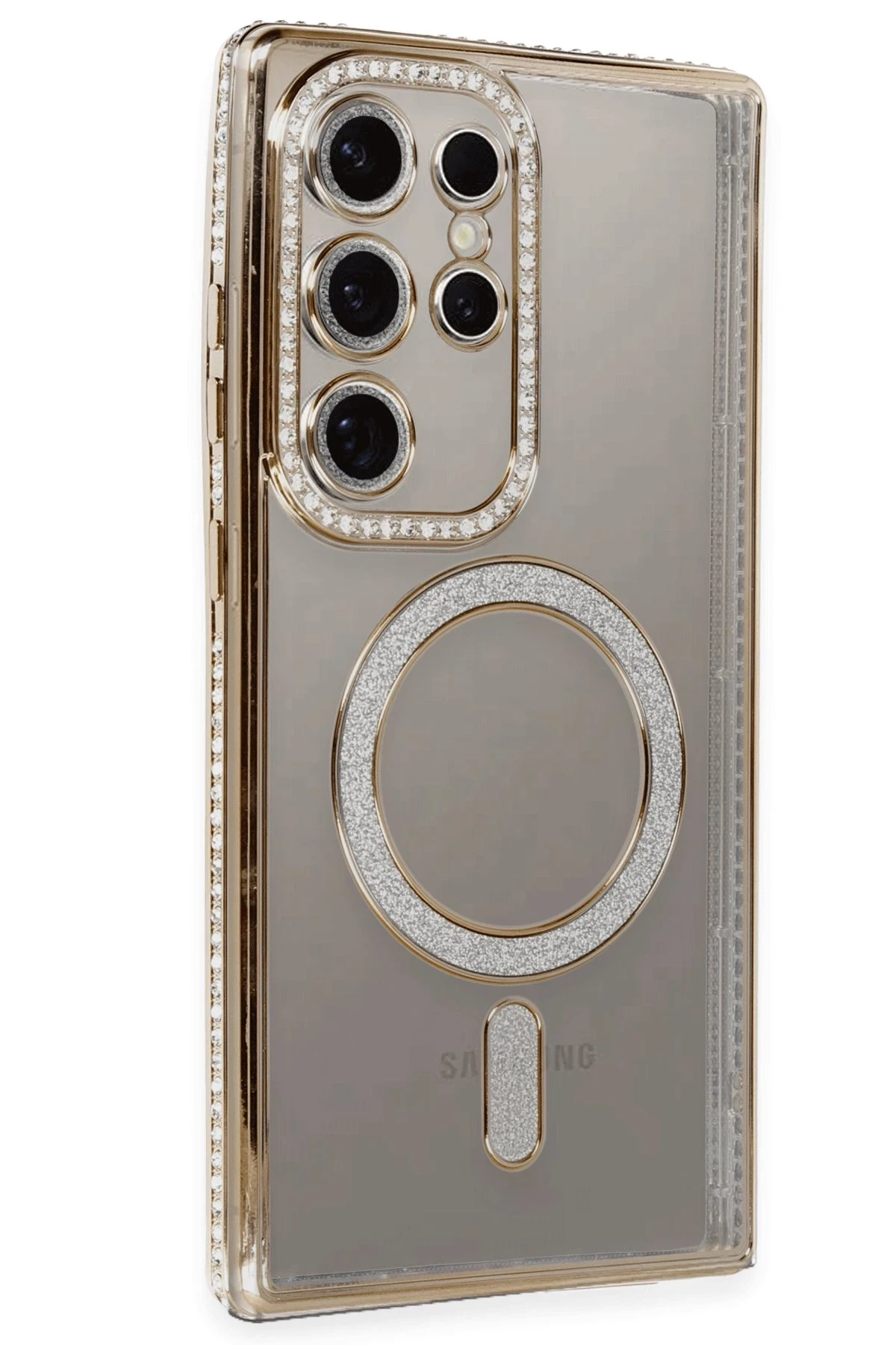 Newface Samsung Galaxy S24 Ultra Kılıf Joke Simli Magneticsafe Kılıf – Gold