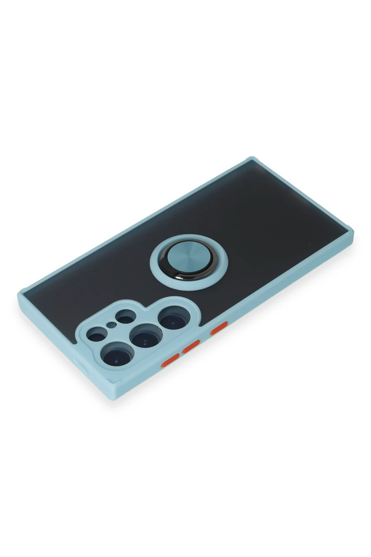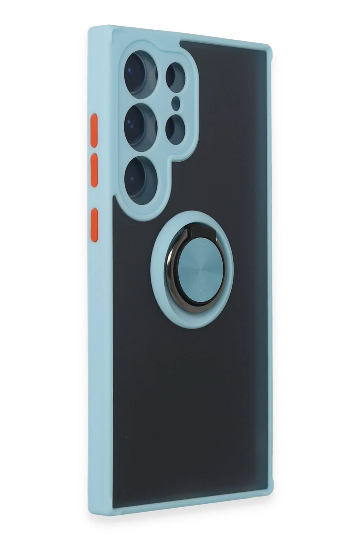 Newface Samsung Galaxy S24 Ultra Kılıf Montreal Yüzüklü Silikon Kapak – Buz Mavi