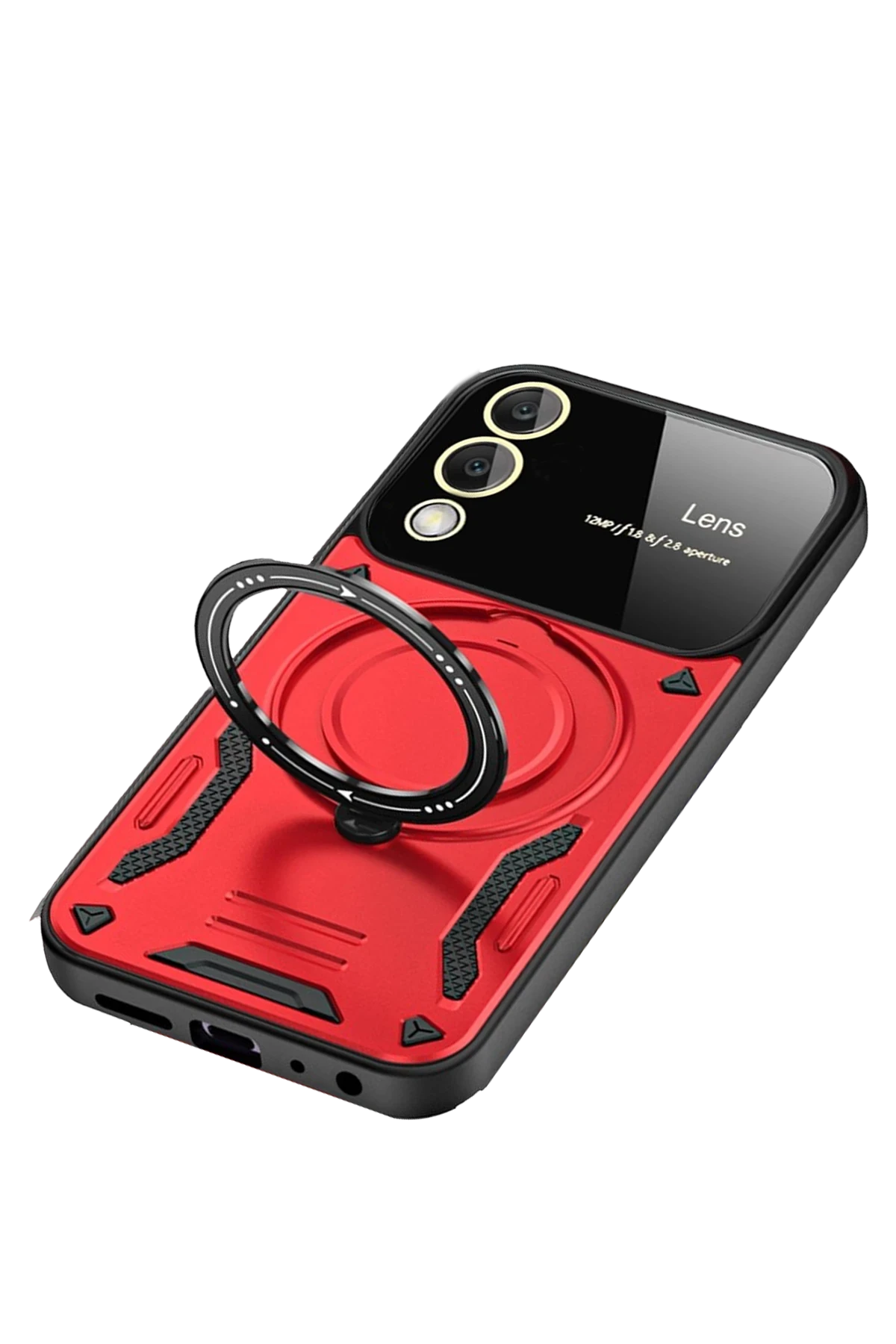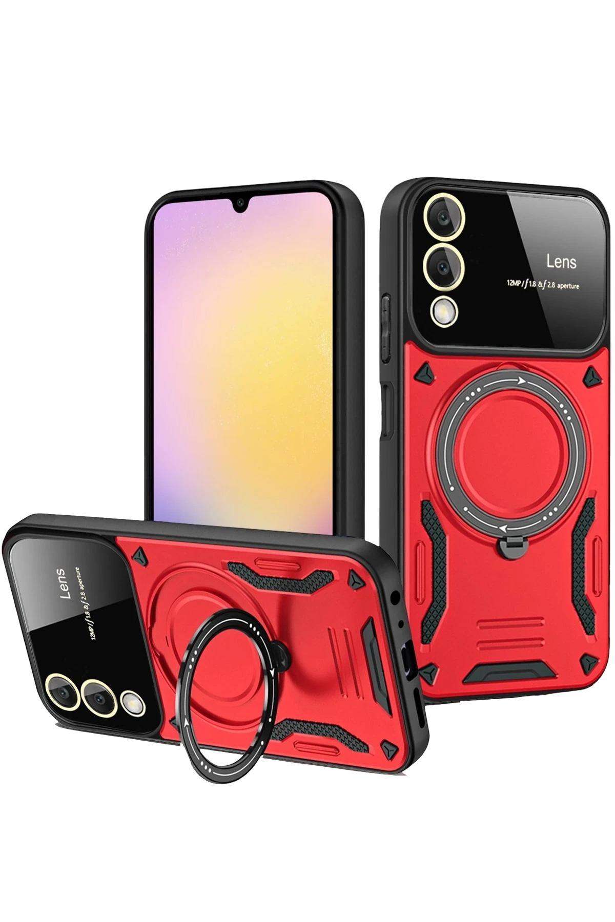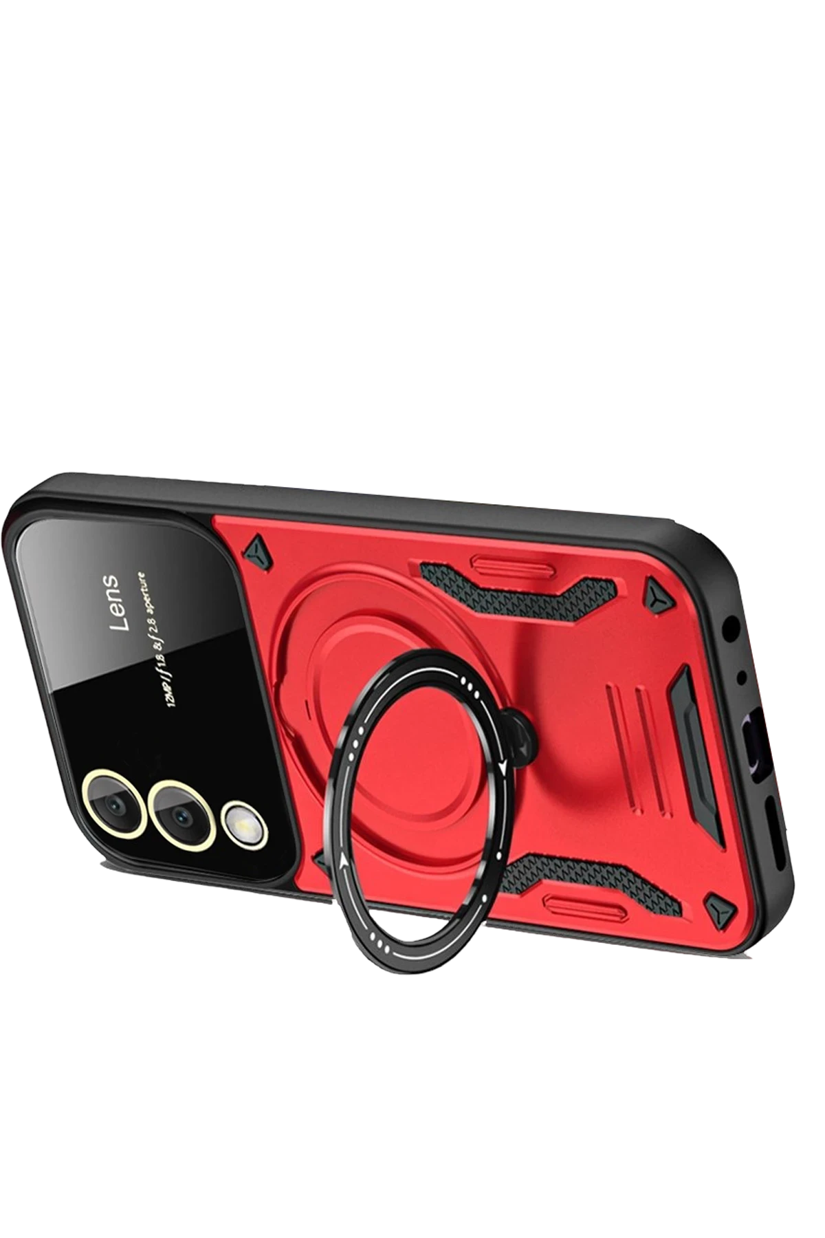 Newface Samsung Galaxy S25 FE Kılıf Joy Lens Standlı Kapak – Kırmızı