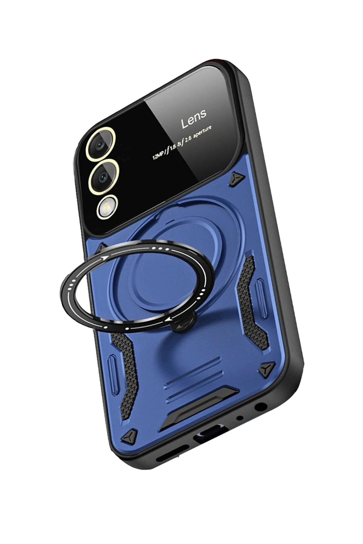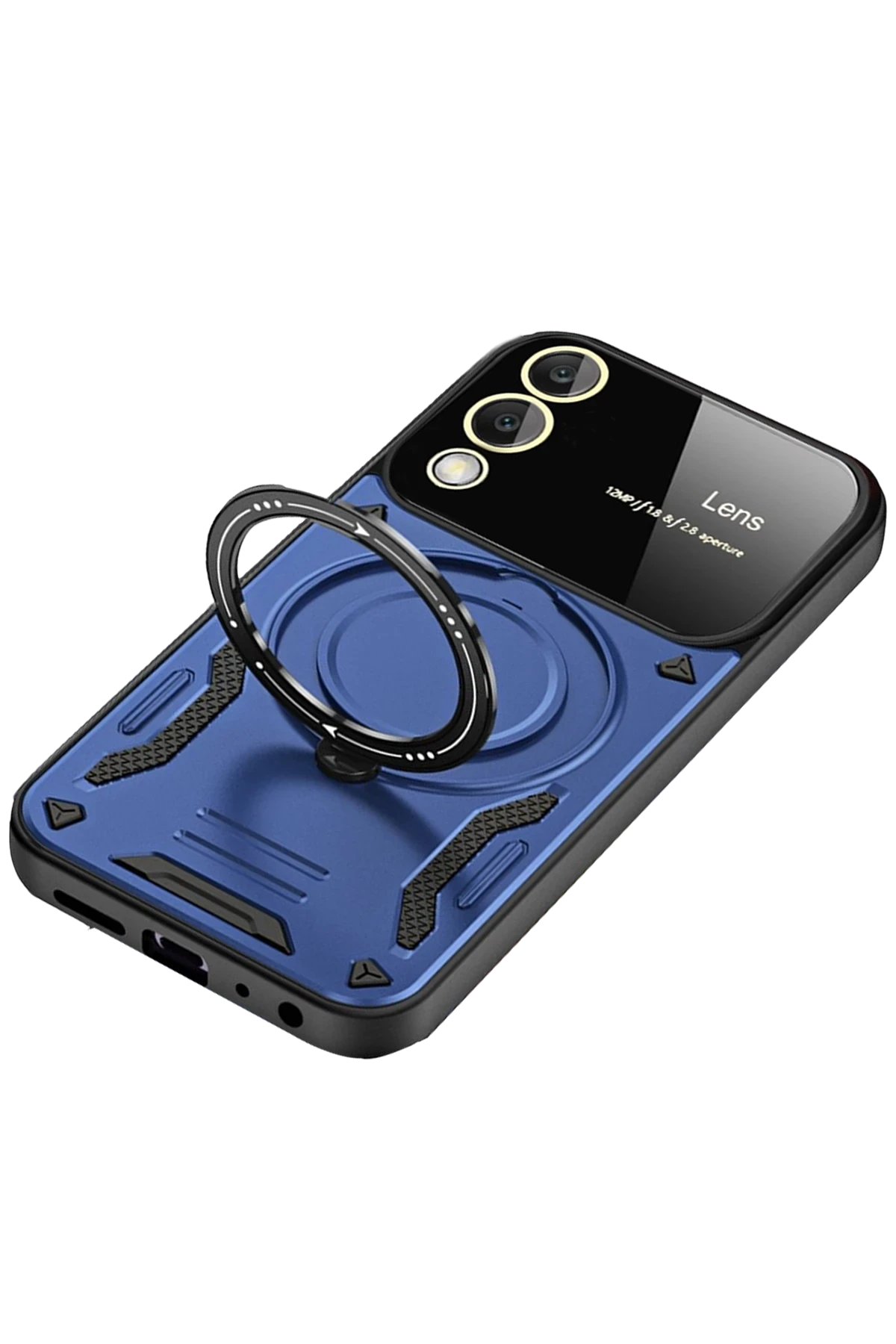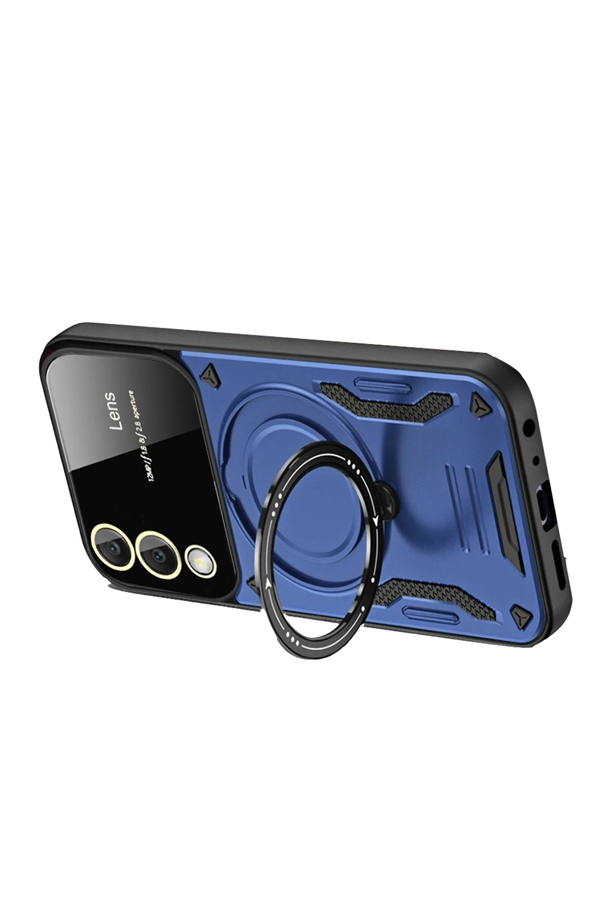Arka yüzeyde yer alan koruyucu lens çerçevesi, kamera camının çizilmesini ve kırılmasını önler. Entegre metal halka, hem parmak tutucu hem de stand işlevi görerek video izleme ve görüşmelerde kullanım kolaylığı sağlar.